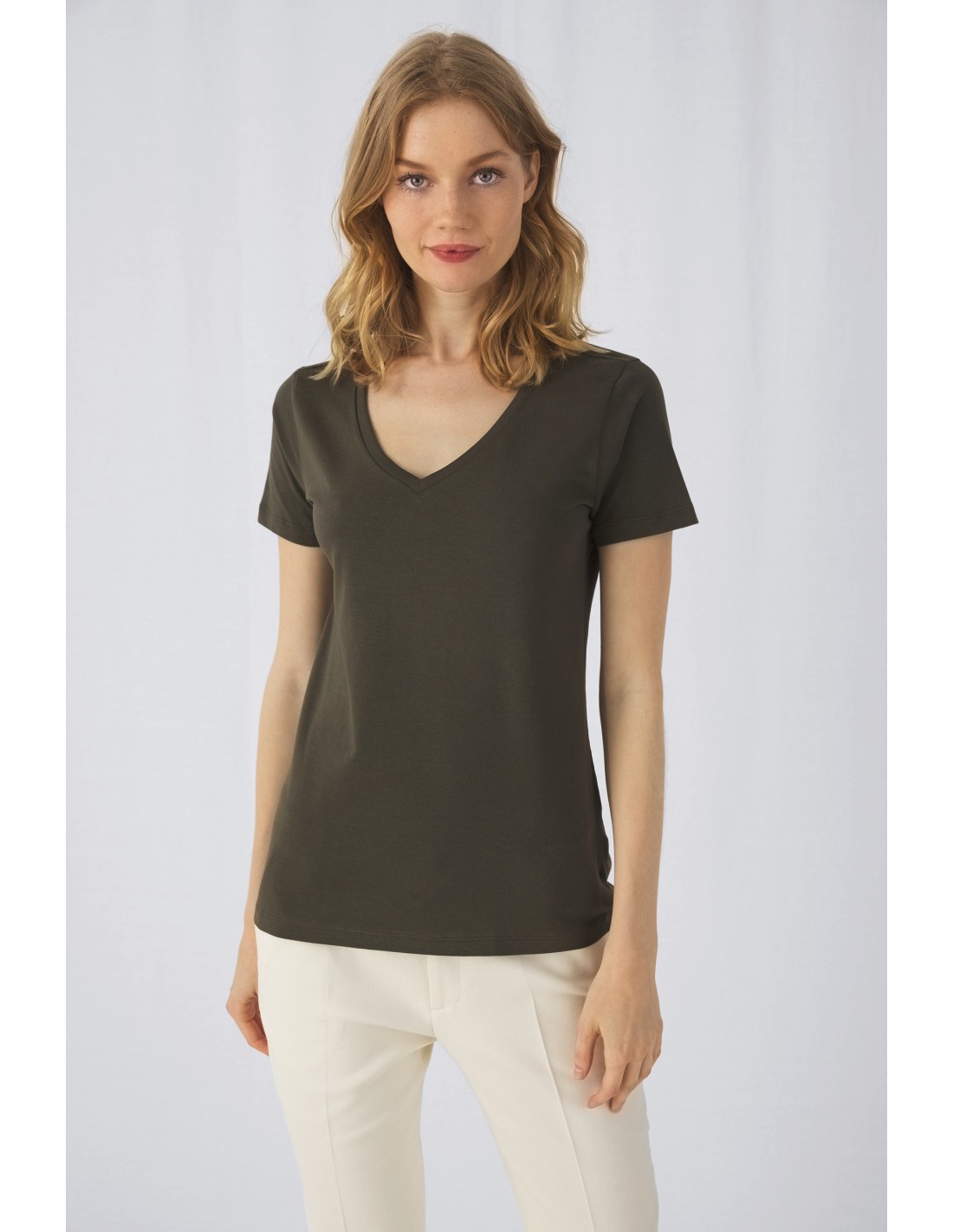 100% algodón orgánico peinado de hilo continuo (Ring-Spun). Punto Jersey. Largo del cuerpo cómodo. Costuras laterales. Cuello de pico de canalé fino, medianamente profundo. Refuerzo en el cuello. Tacto agradable y ultrasuave. Sistema «B&C No Label»: sin etiqueta de marca para un retiquetado perfecto. Certificado STANDARD 100 by OEKO-TEX®N° 1501003X, Centexbel.