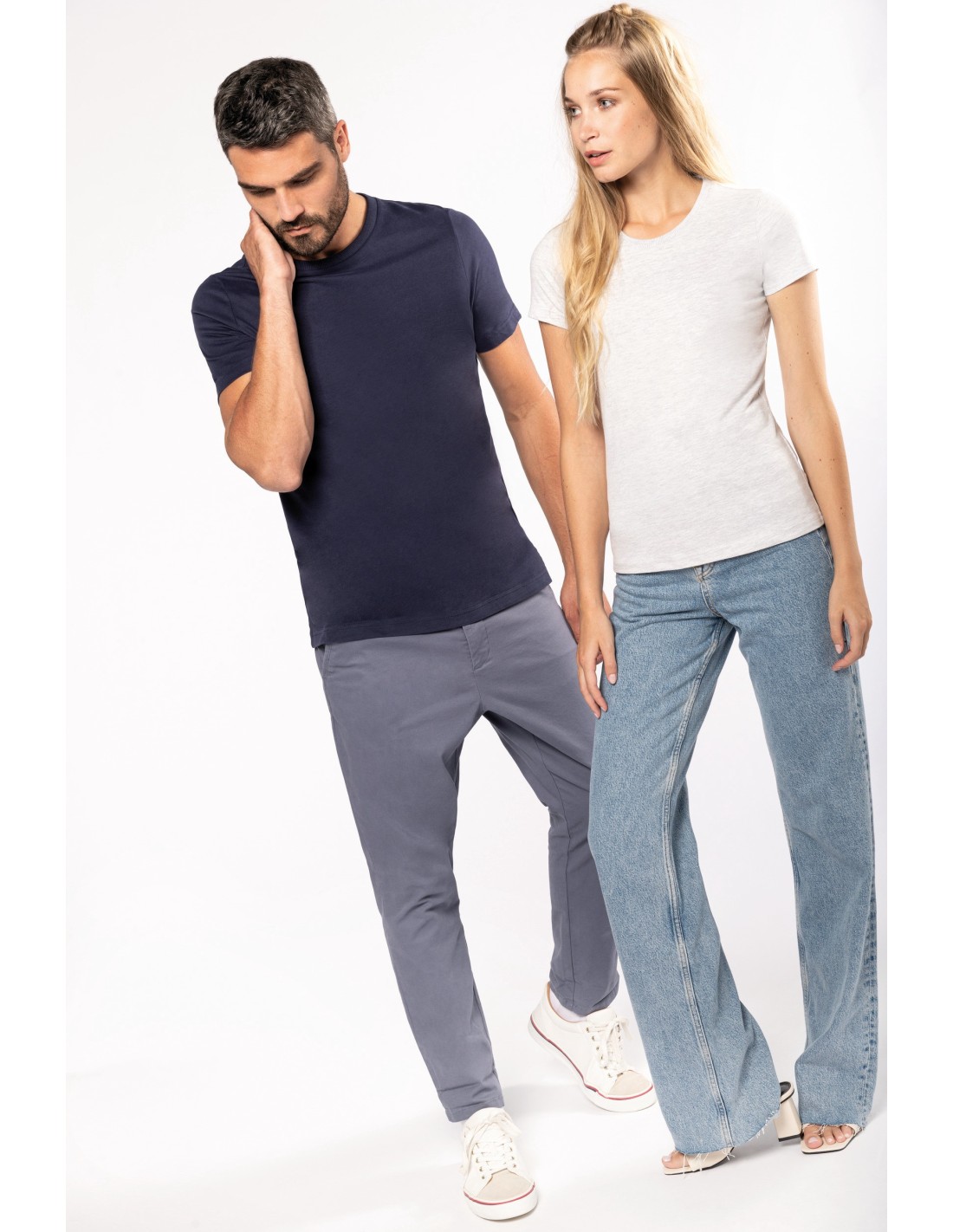100 % algodón (Ash Heather : 98% algodón / 2% viscosa). Punto jersey. Cuello redondo. Tacto piel de melocotón y aspecto Vintage. Doble tira cubrecosturas de sarga con tejido zigzag en cuello. Acabado con doble pespunte. Este producto ha recibido un tratamieto especial que da un aspecto envejecido intencional. El proceso efectuado da como resultado una variación de color ente los productos convirtiendo cada pieza en única. Sin etiqueta de marca en el cuello, únicamente una etiqueta con la talla para facilitar la personalización. Certificado STANDARD 100 by OEKO-TEX®N° CQ1007/7, IFTH.