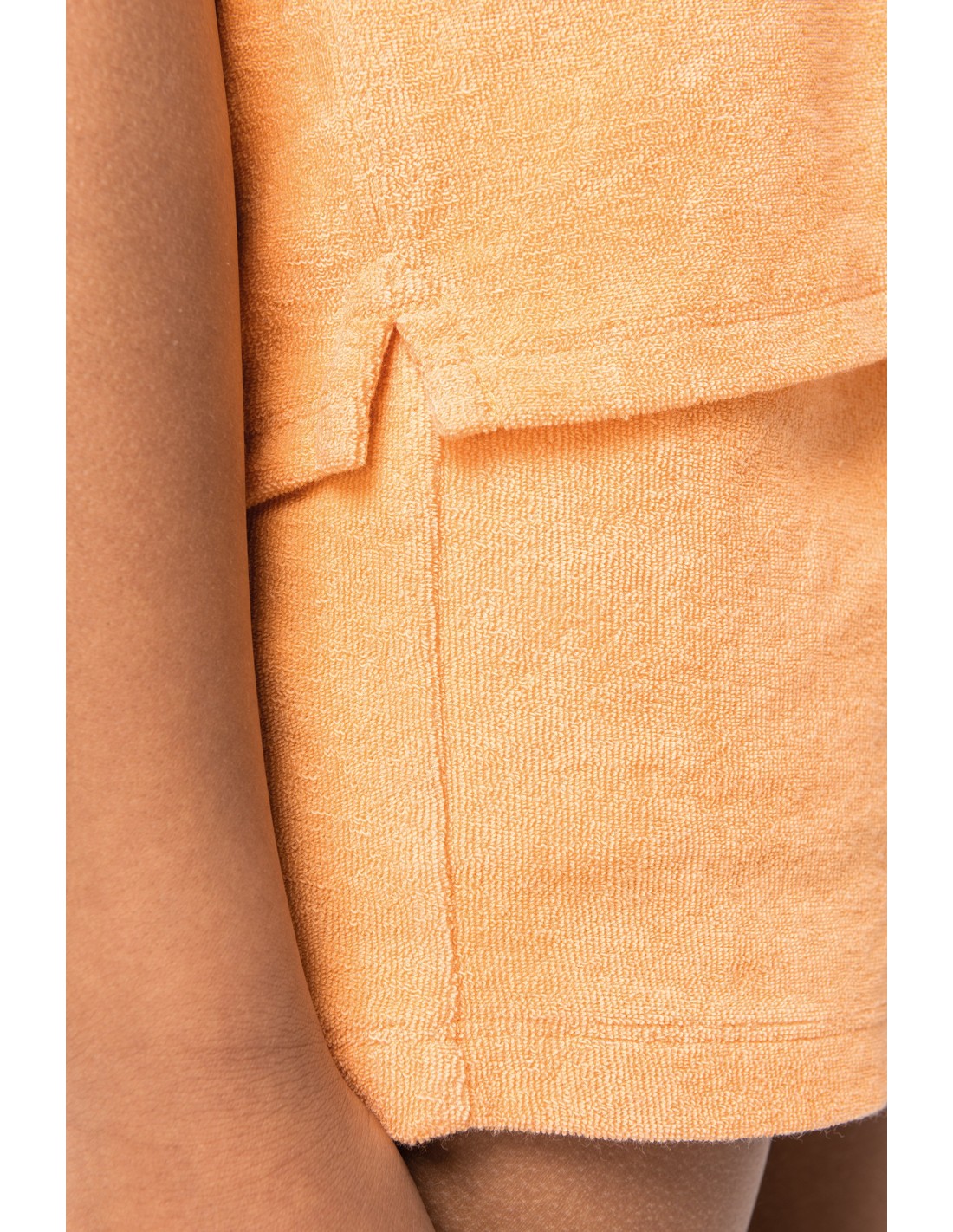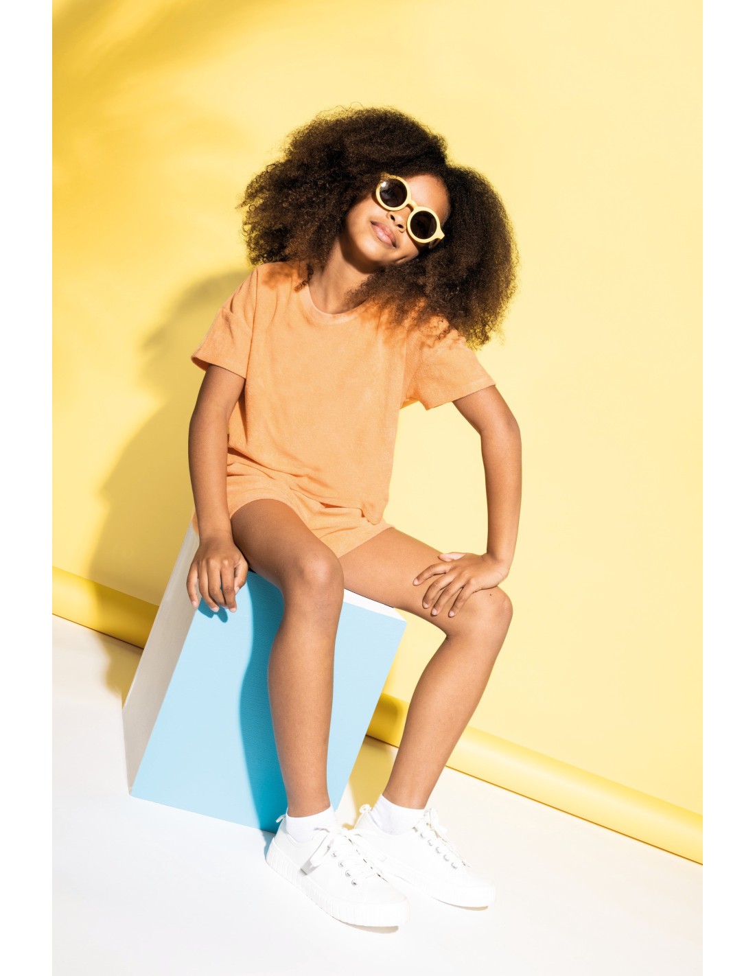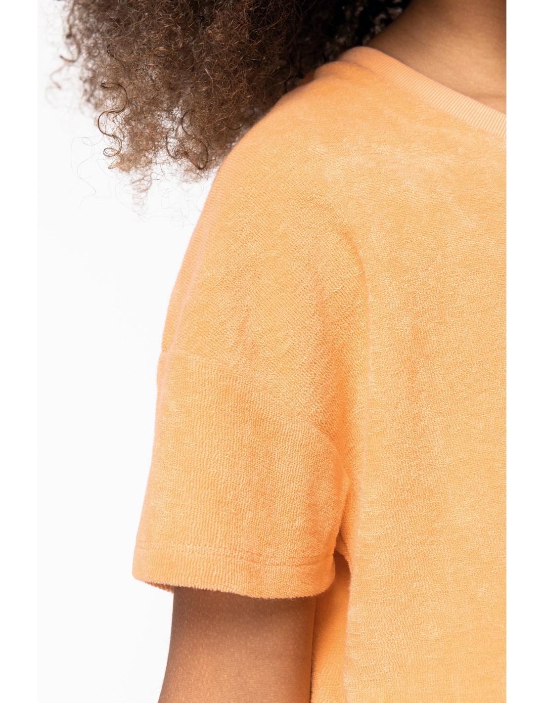 80% algodón orgánico y 20% poliéster reciclado postconsumo. Fabricada en Portugal. Algodón peinado. Tejido de rizo. Corte recto con hombros caídos. Costuras laterales. Lavado enzimático. Media luna en la espalda. Cuello redondo con canalé 1x1. Tira cubrecosturas de espiga a tono en el cuello. Refuerzo en los hombros del tejido principal. Dobladillo de doble pespunte en la parte inferior de las mangas y de la prenda. Aberturas laterales con acabado interior de espiga a tono.