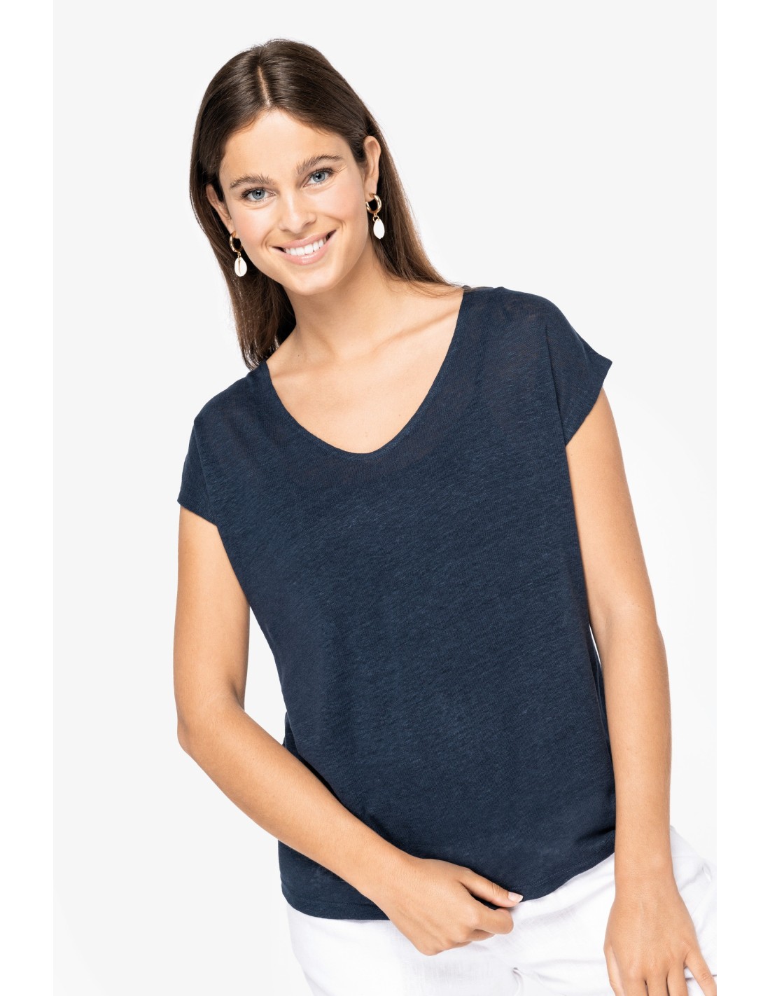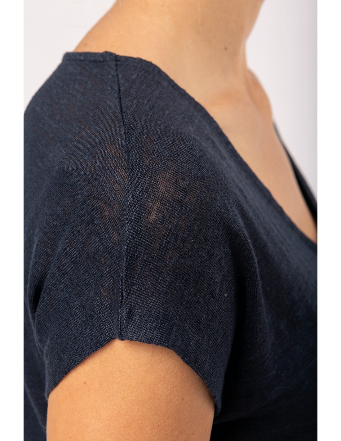 Camiseta lino cuello redondo mujer