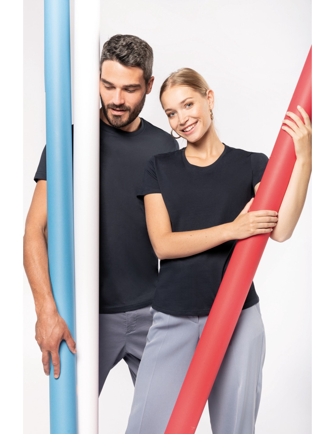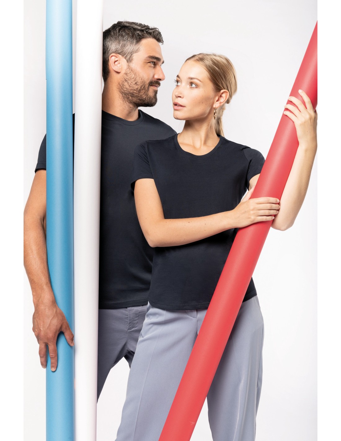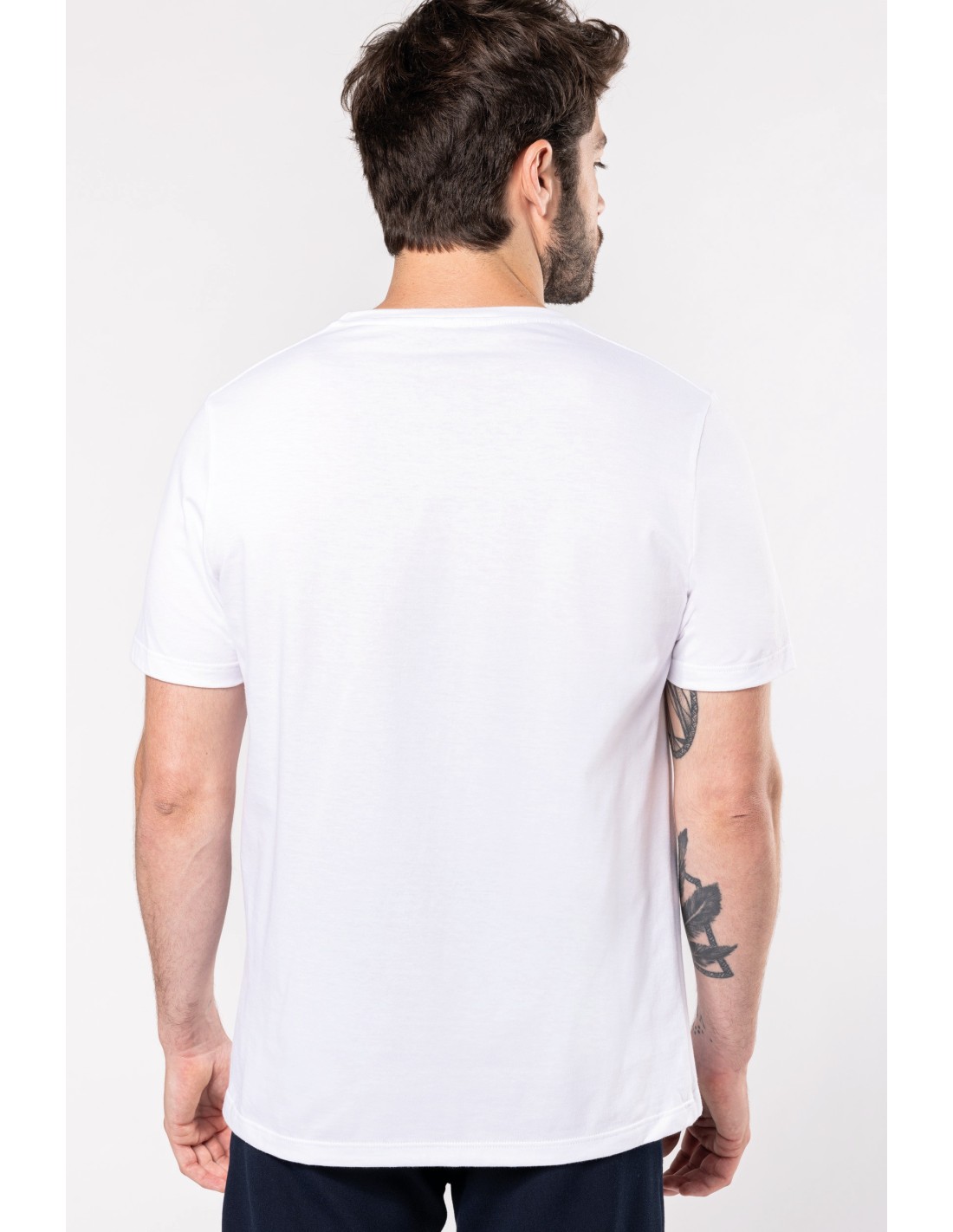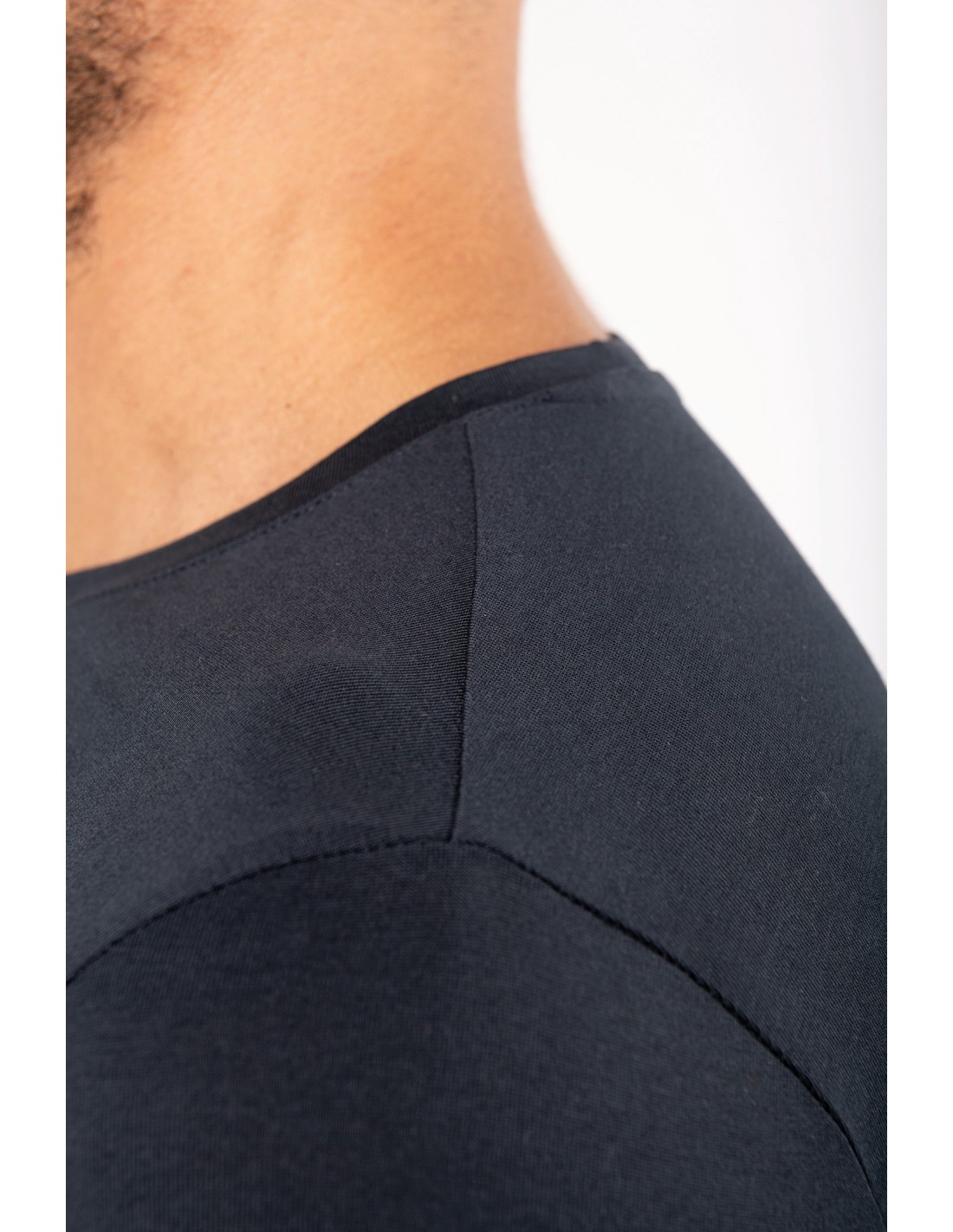 100% algodon orgánico peinado. Etiqueta "Origine France Garantie". Corte y costura. Cuello redondo en canalé. Tira cubrecosturas a tono en cuello y hombros. Etiqueta clip azul / blanco / rojo en bajo de la manga izquierda. Acabado con doble pespunte en bajo de la manga y de la prenda. Embalaje 100% reciclable.