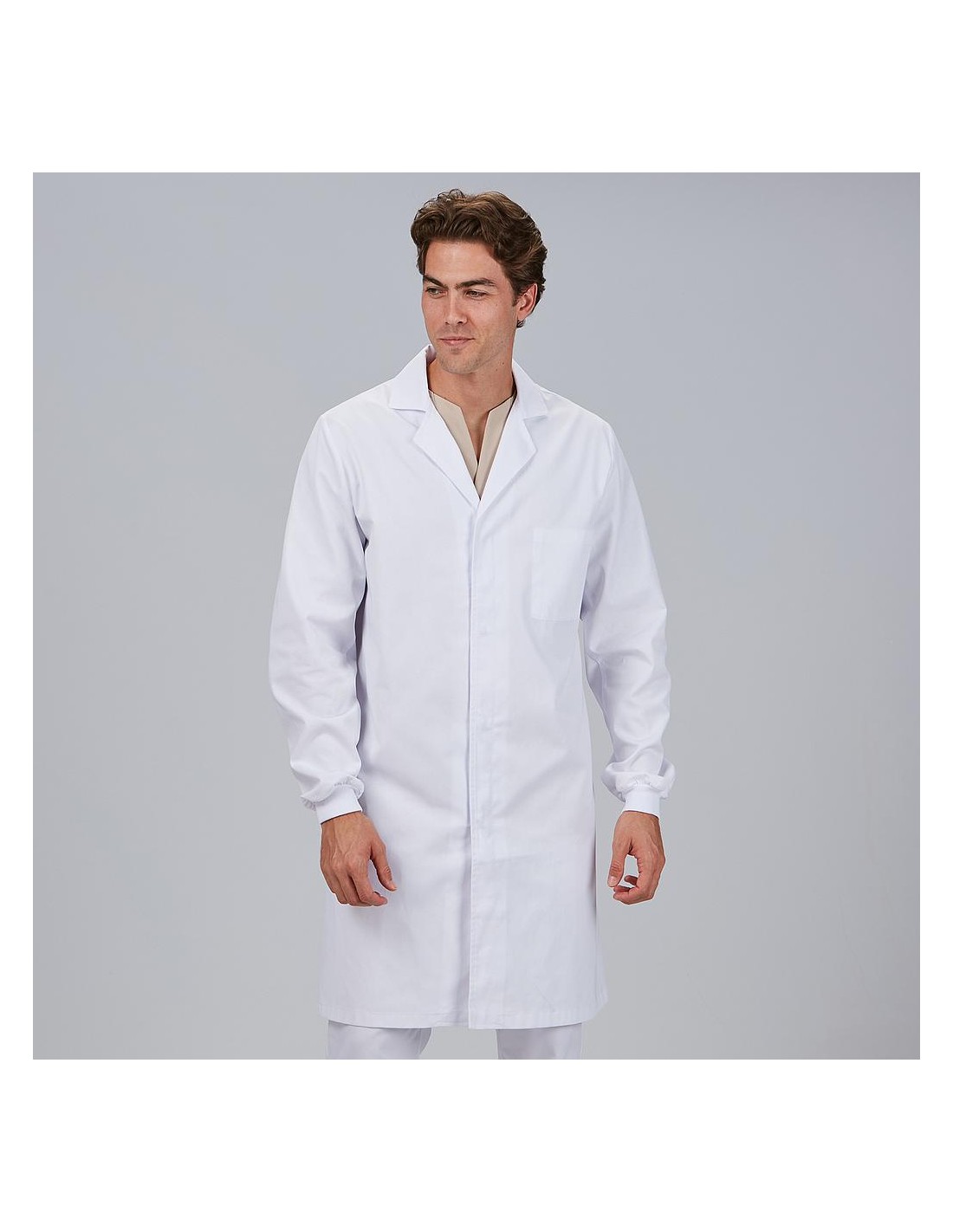 Bata blanca laboratorio puño y corchetes