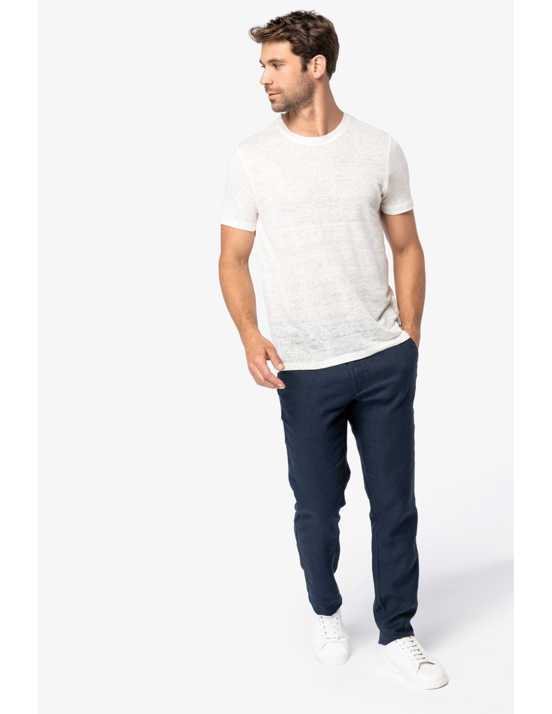 Camiseta lino cuello redondo hombre