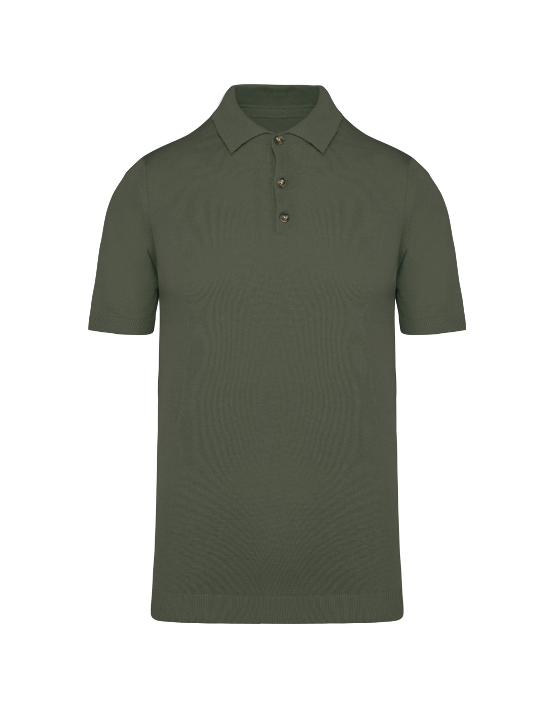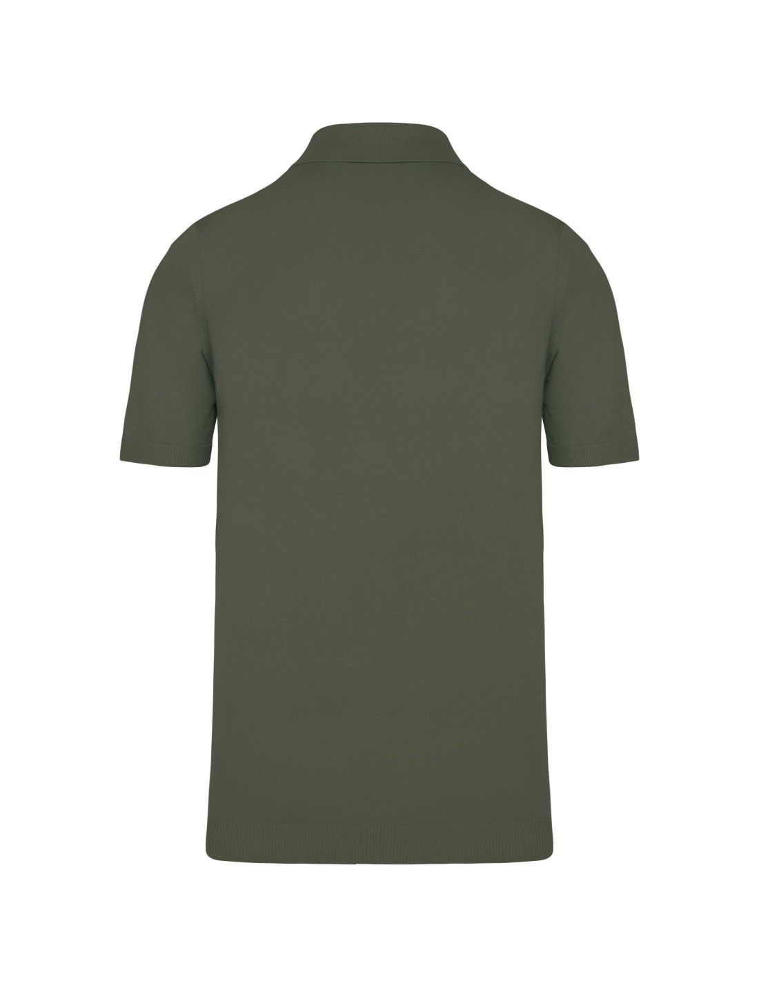 100% organic cotton. Combed cotton. Gauge 12. Straight fit. 3-button placket. Contrasting horn-effect buttons in recycled plastic. 1x1 ribbed collar and finishes on the cuffs and hem. Taped neck in main material. “Fully Fashioned” knit. Average weight in L: 225 g.