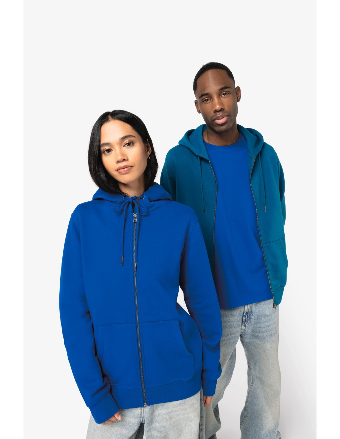 Eco-friendly unisex full zip hooded sweatshirt