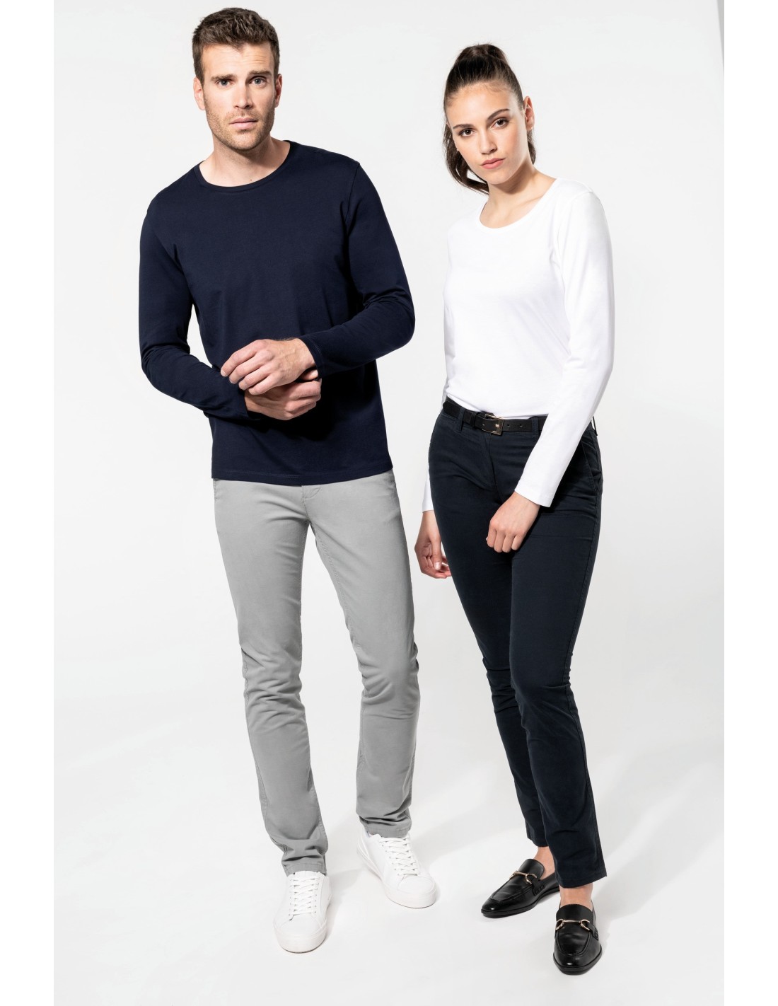 100 % algodón. Punto de algodón peinado Supima®. Tejido de jersey muy fino y de alta calidad con un tacto suave y sedoso. Construcción cortada y cosida. Cuello redondo con tira de limpieza a tono. Costura del hombro reforzada con una tira de silicona. Acabado en el bajo de las mangas y en el bajo de la prenda con dobladillo de doble pespunte. Sin etiqueta de marca en el cuello, únicamente una etiqueta con la talla para facilitar la personalización.