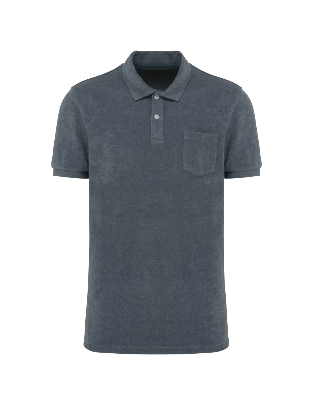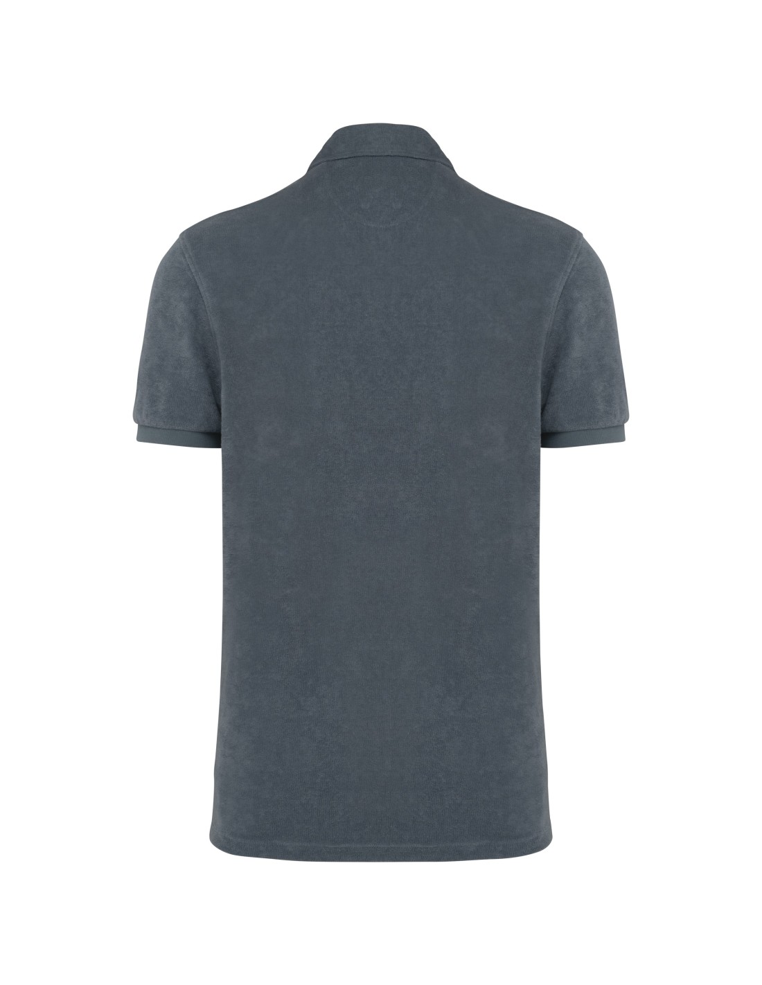 80 % algodón orgánico / 20 % poliéster post-consumer. Made in Portugal. Algodón peinado. Material tipo rizo. Lavado con enzimas. Corte recto. Bolsillo en el pecho. Plaqueta de dos botones. Cuello con tira cubrecosturas en forma de espiga en la parte interior. Aberturas laterales con acabado en forma de espiga en el interior. Refuerzo en los hombros. Canalé 1 x 1 en el bajo de las mangas. Media luna en la espalda.