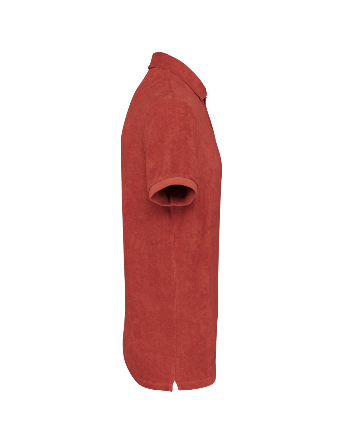 80 % algodón orgánico / 20 % poliéster post-consumer. Made in Portugal. Algodón peinado. Material tipo rizo. Lavado con enzimas. Corte recto. Bolsillo en el pecho. Plaqueta de dos botones. Cuello con tira cubrecosturas en forma de espiga en la parte interior. Aberturas laterales con acabado en forma de espiga en el interior. Refuerzo en los hombros. Canalé 1 x 1 en el bajo de las mangas. Media luna en la espalda.