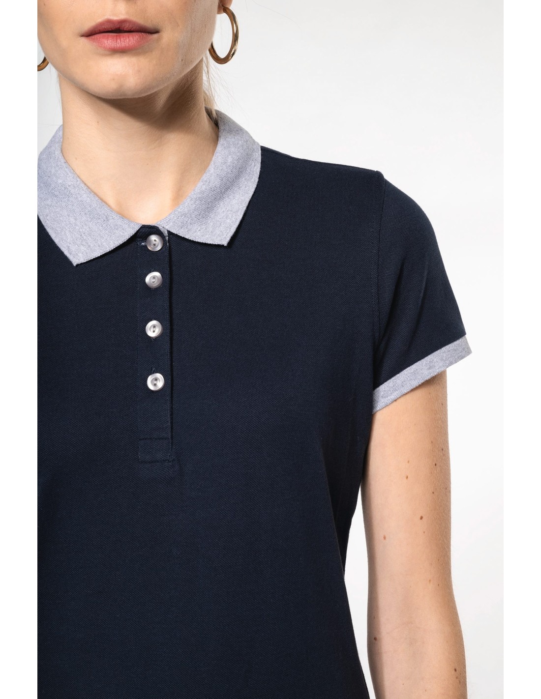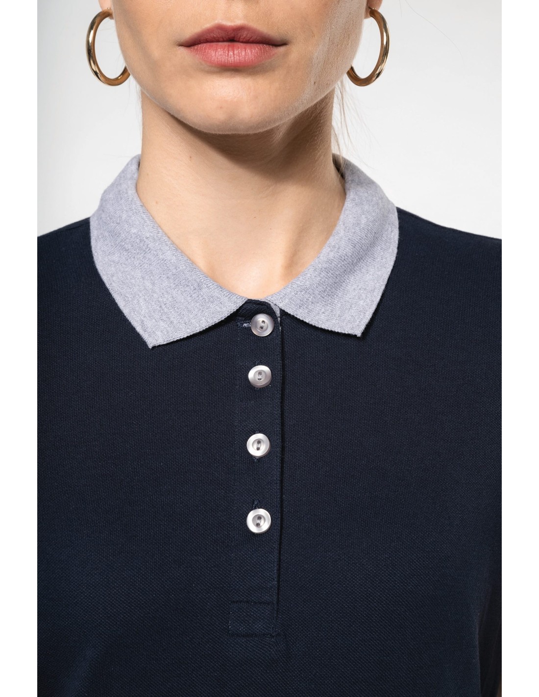 Polo piqué bicolor mujer