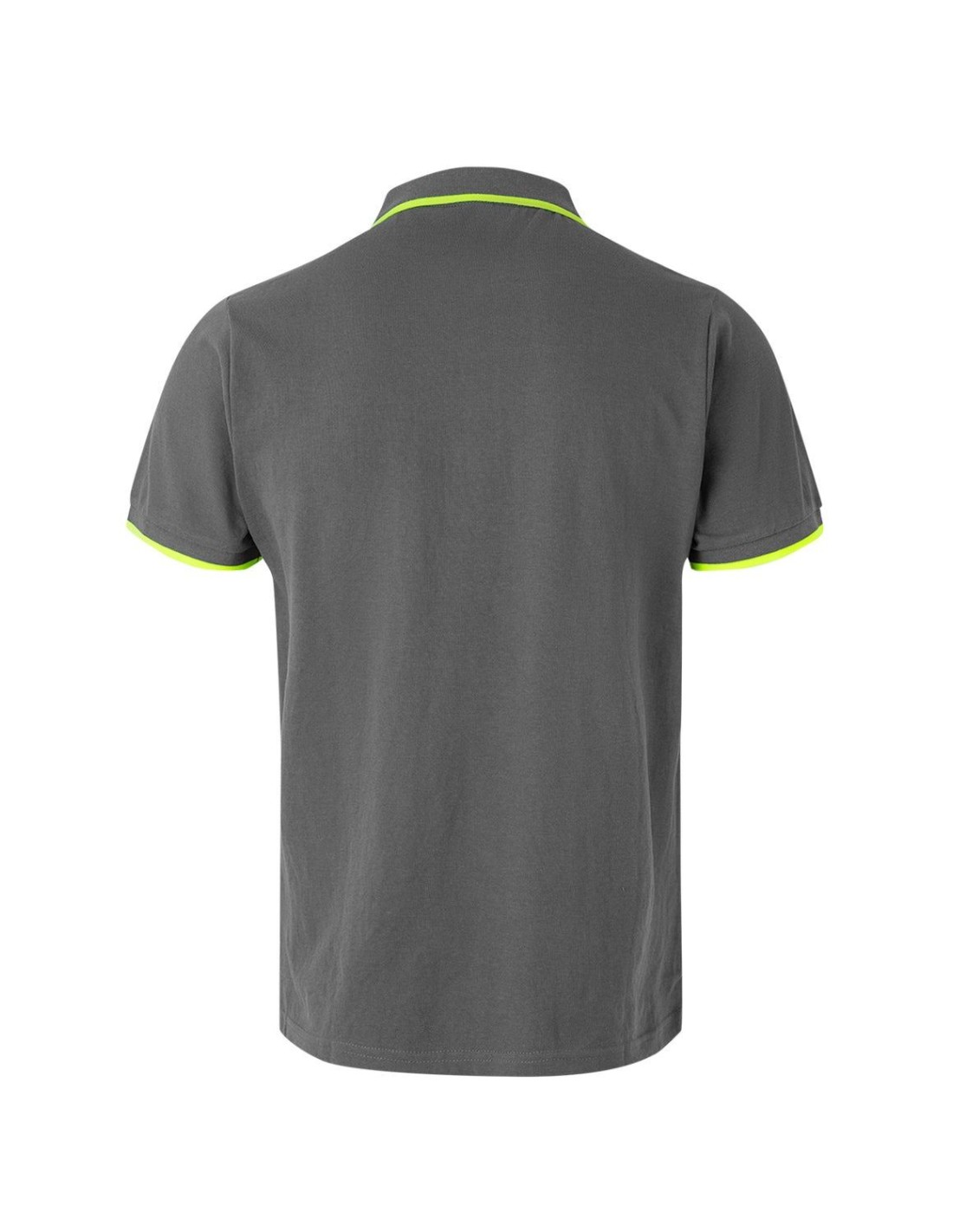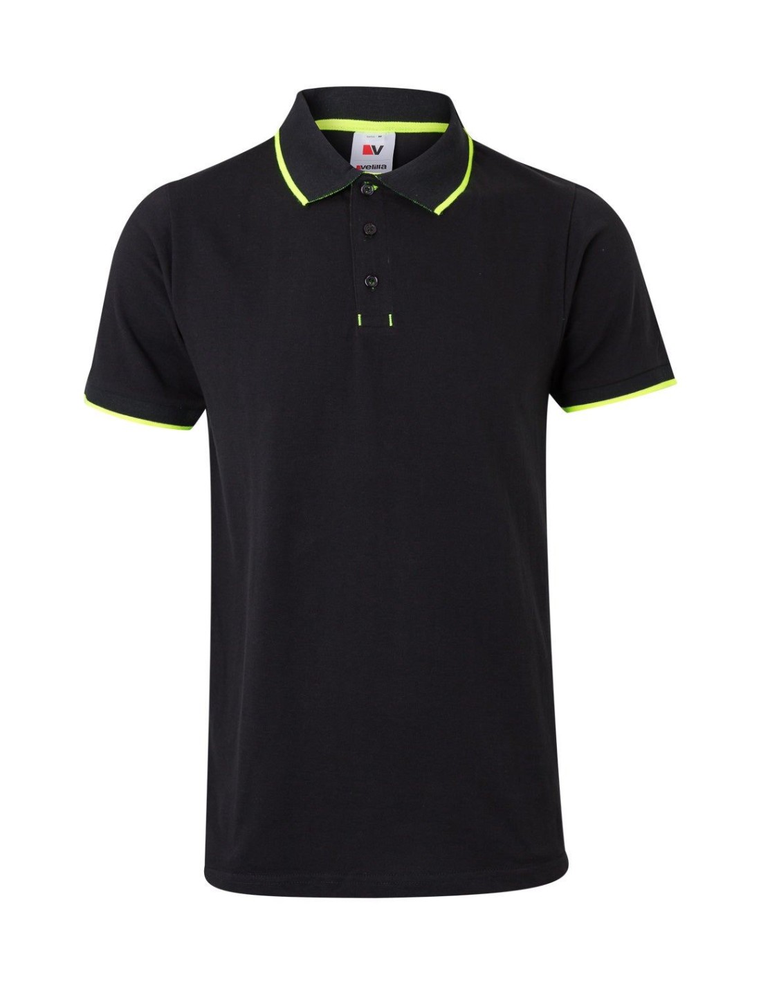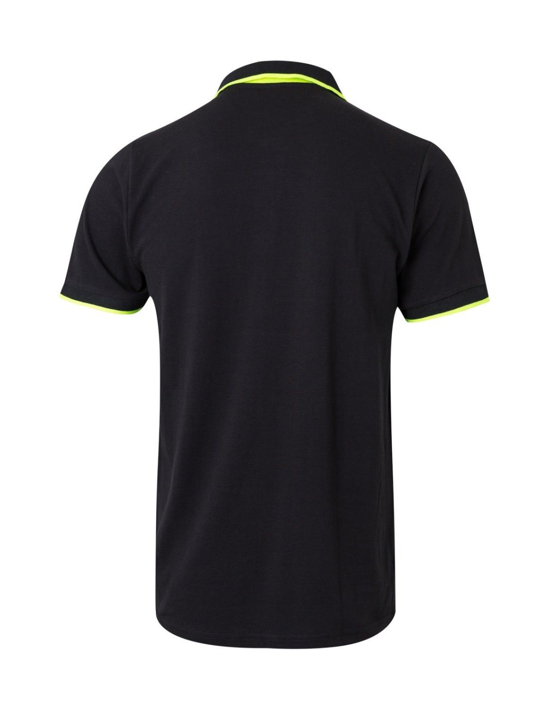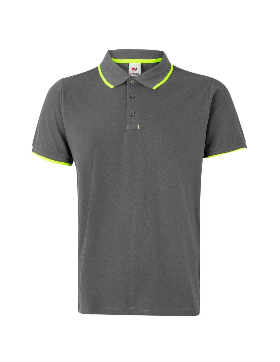 Polo de trabajo bicolor raya manga corta con cierre central con botones. Cuello y bajo de la managa de canalé. Incluye bolsillo de parche suelto, sin coser. Color contraste en el interior del cuello, línea en el bajo de la manga, interior de la botonadura, cinta de tejido que cubre la costura del cuella y presillas.