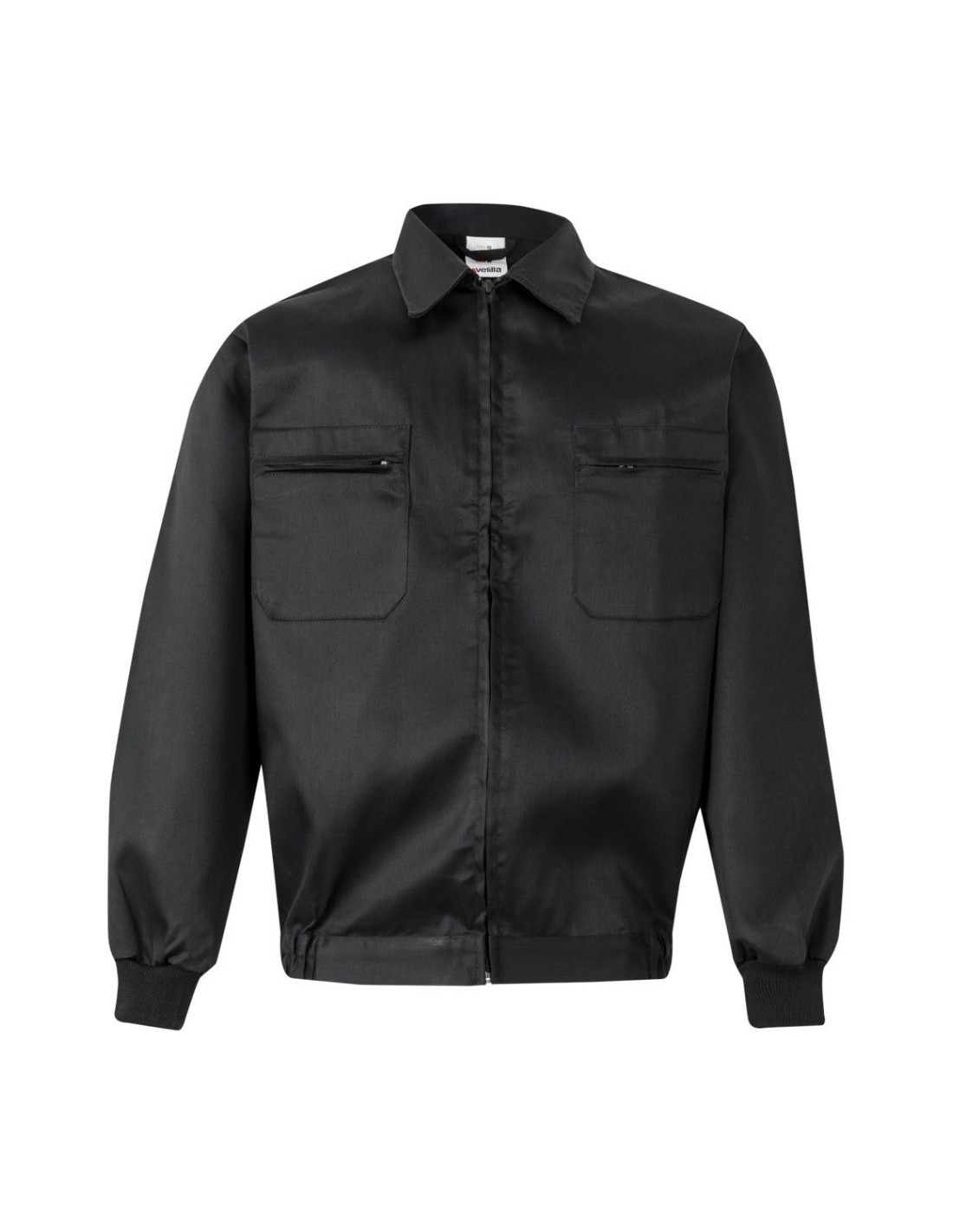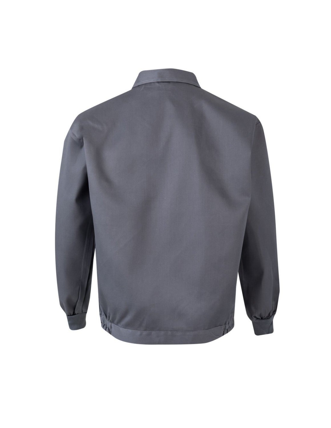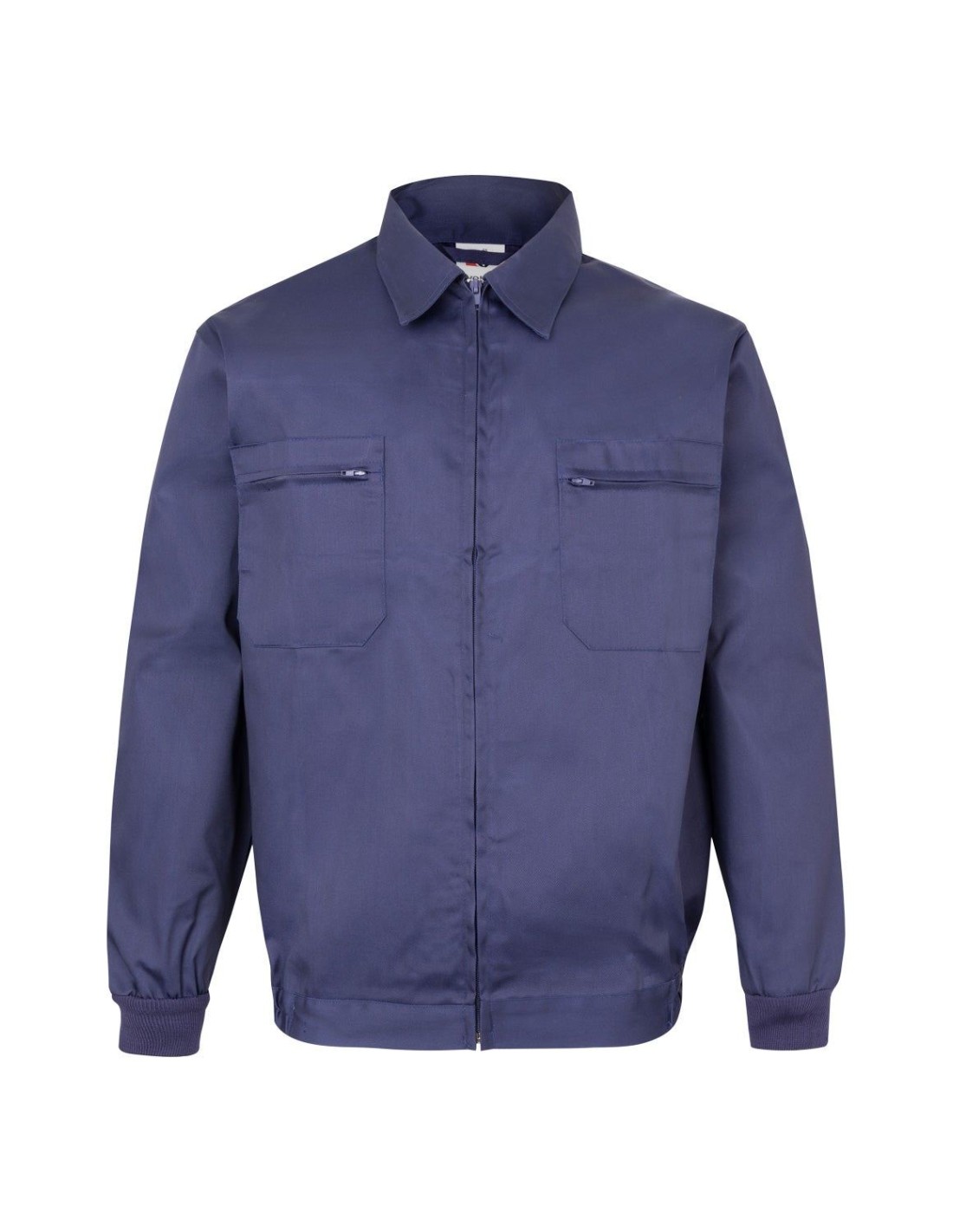 Cazadora de trabajo con cremallera central oculta. Puños de canalé, dos bolsillos de plaston con cremallera en el pecho y cintura con elástico en los laterales.