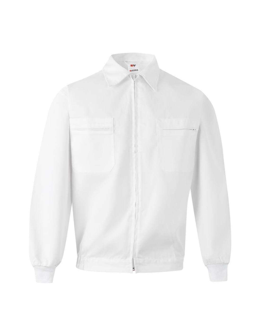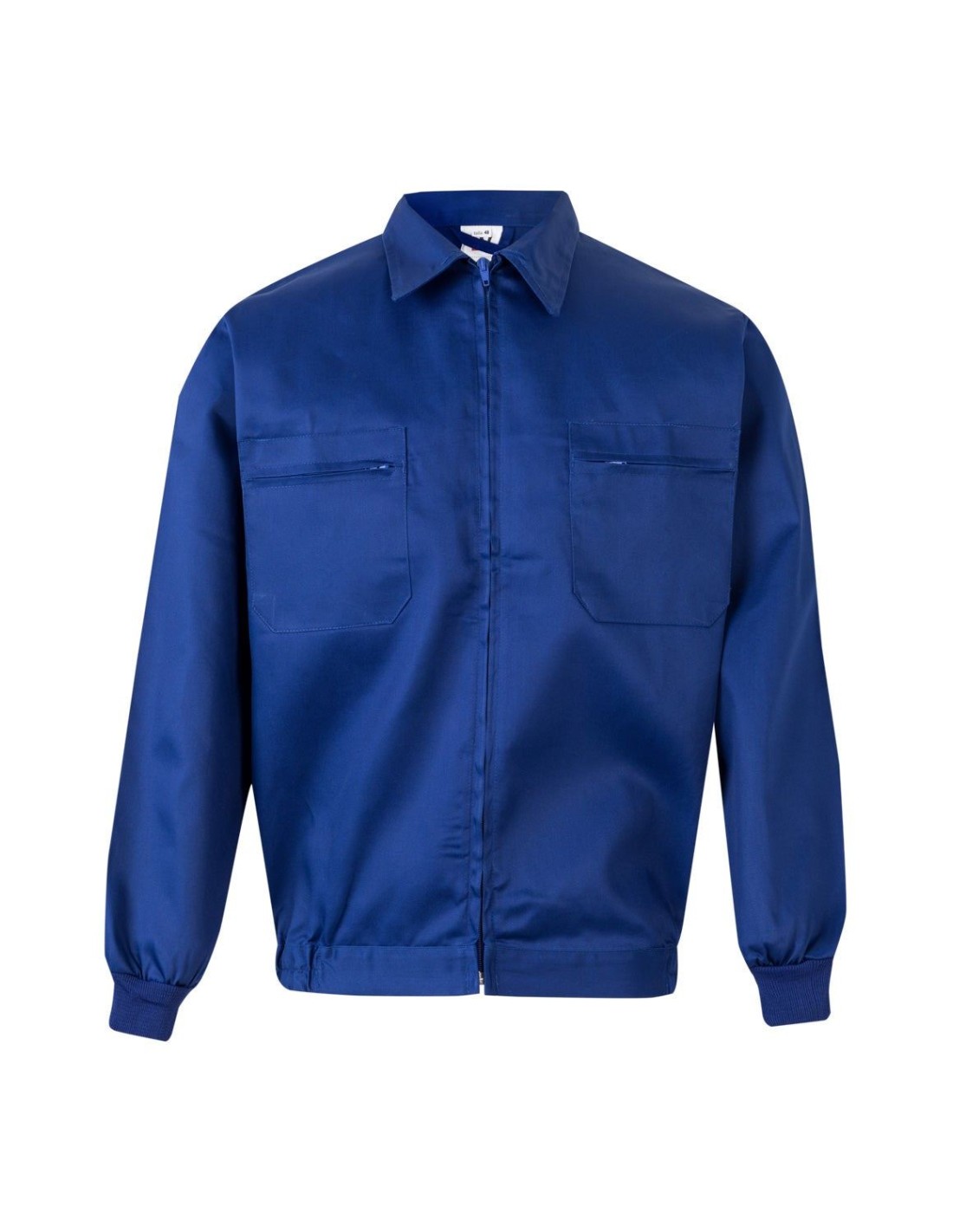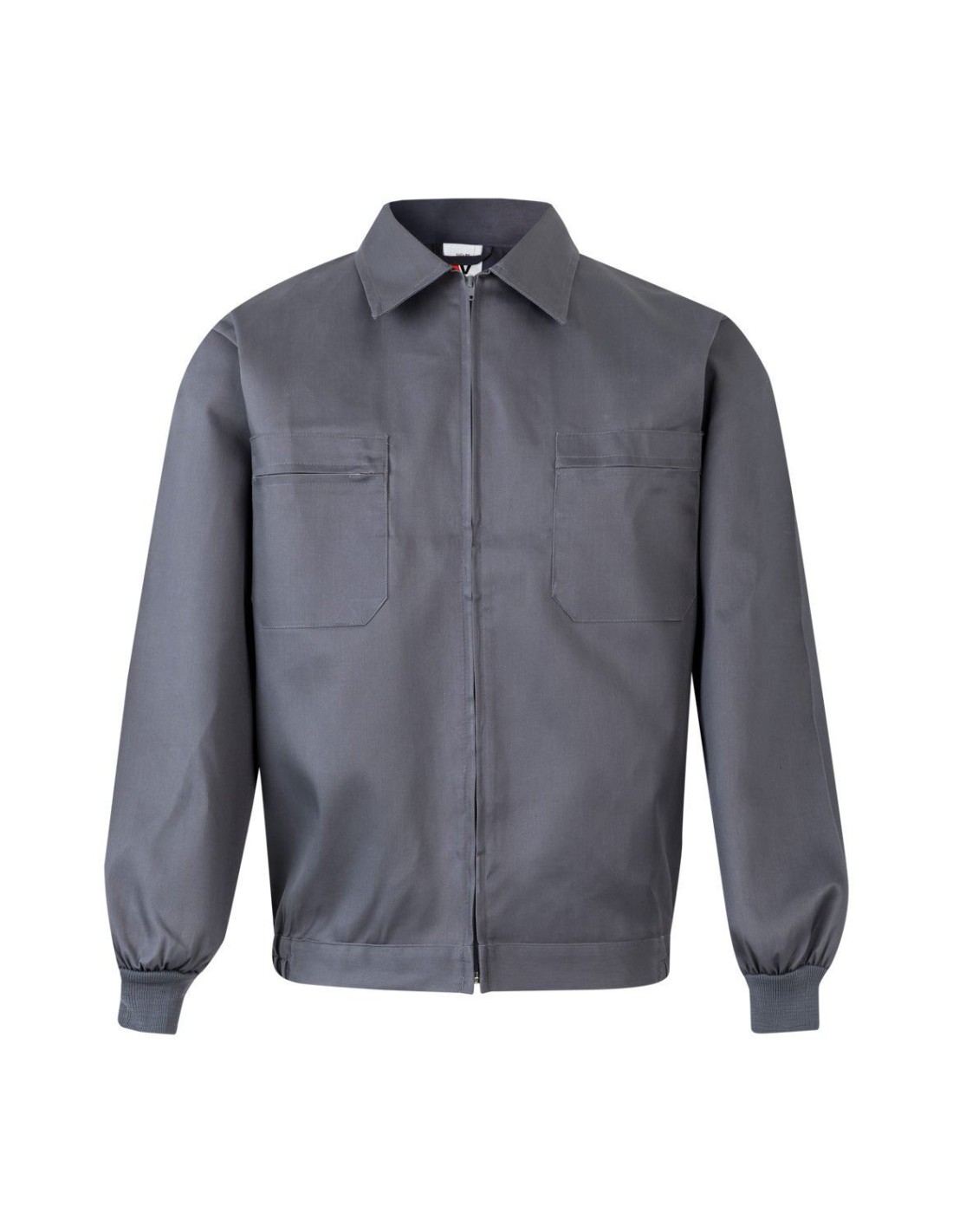 Cazadora de trabajo con cremallera central oculta. Puños de canalé, dos bolsillos de plaston con cremallera en el pecho y cintura con elástico en los laterales.