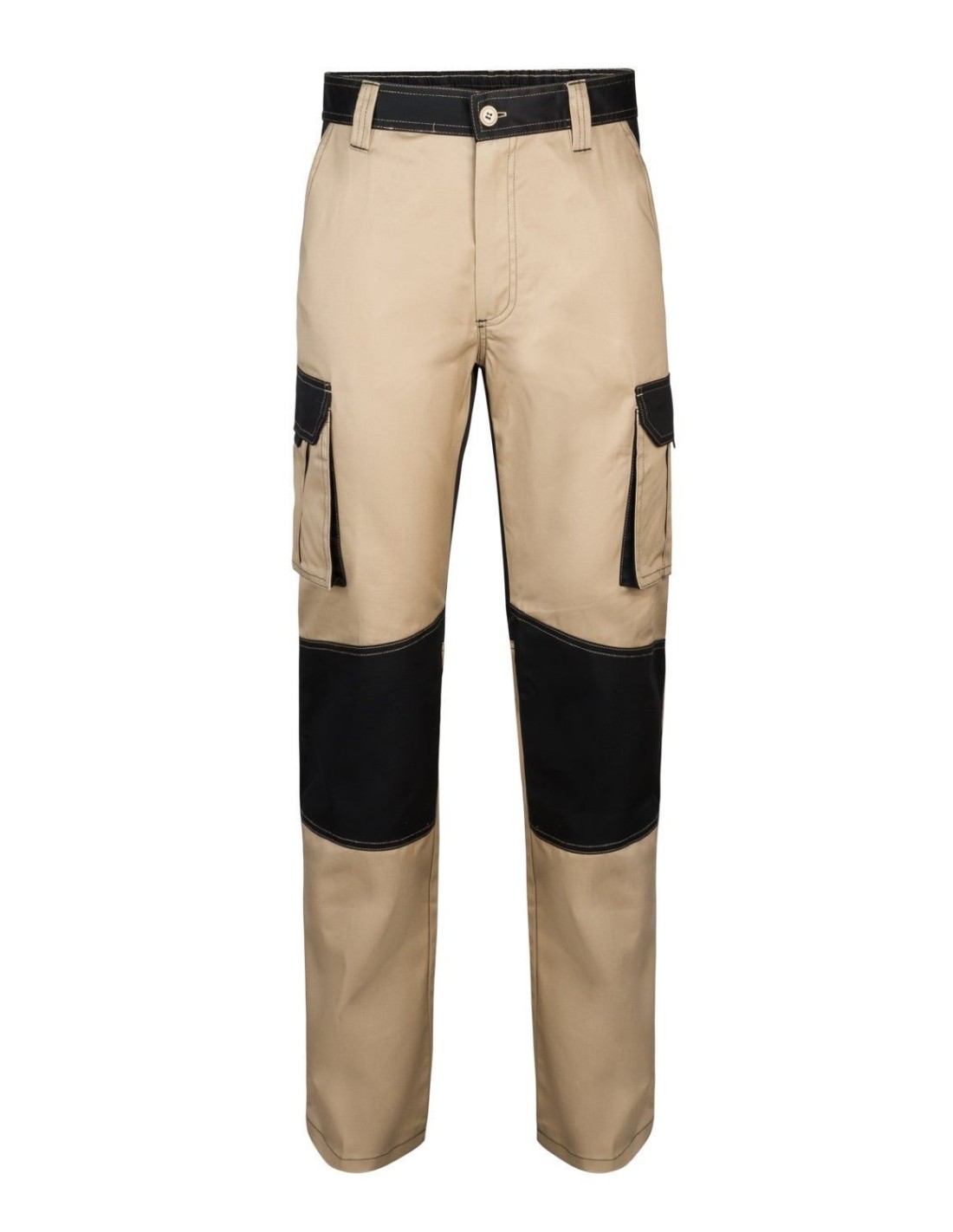 Pantalón de trabajo multibolsillos bicolor elástico con refuerzo en rodilleras.