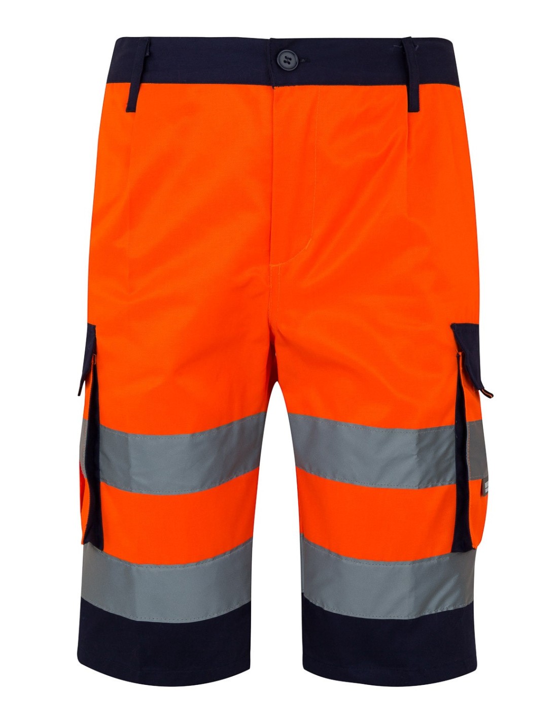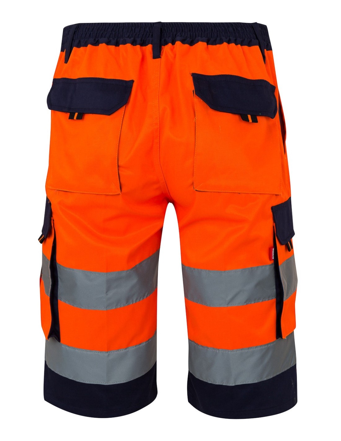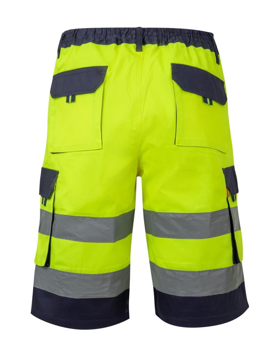 Pantalón de trabajo corto de alta visibilidad con bandas reflectantes.