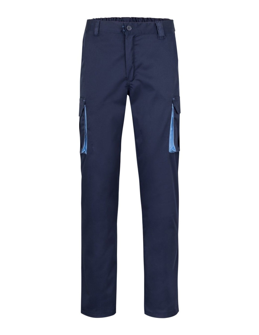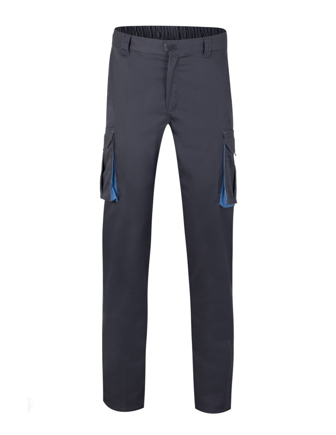 Pantalón de trabajo multibolsillos bicolor elástico de máximo confort.