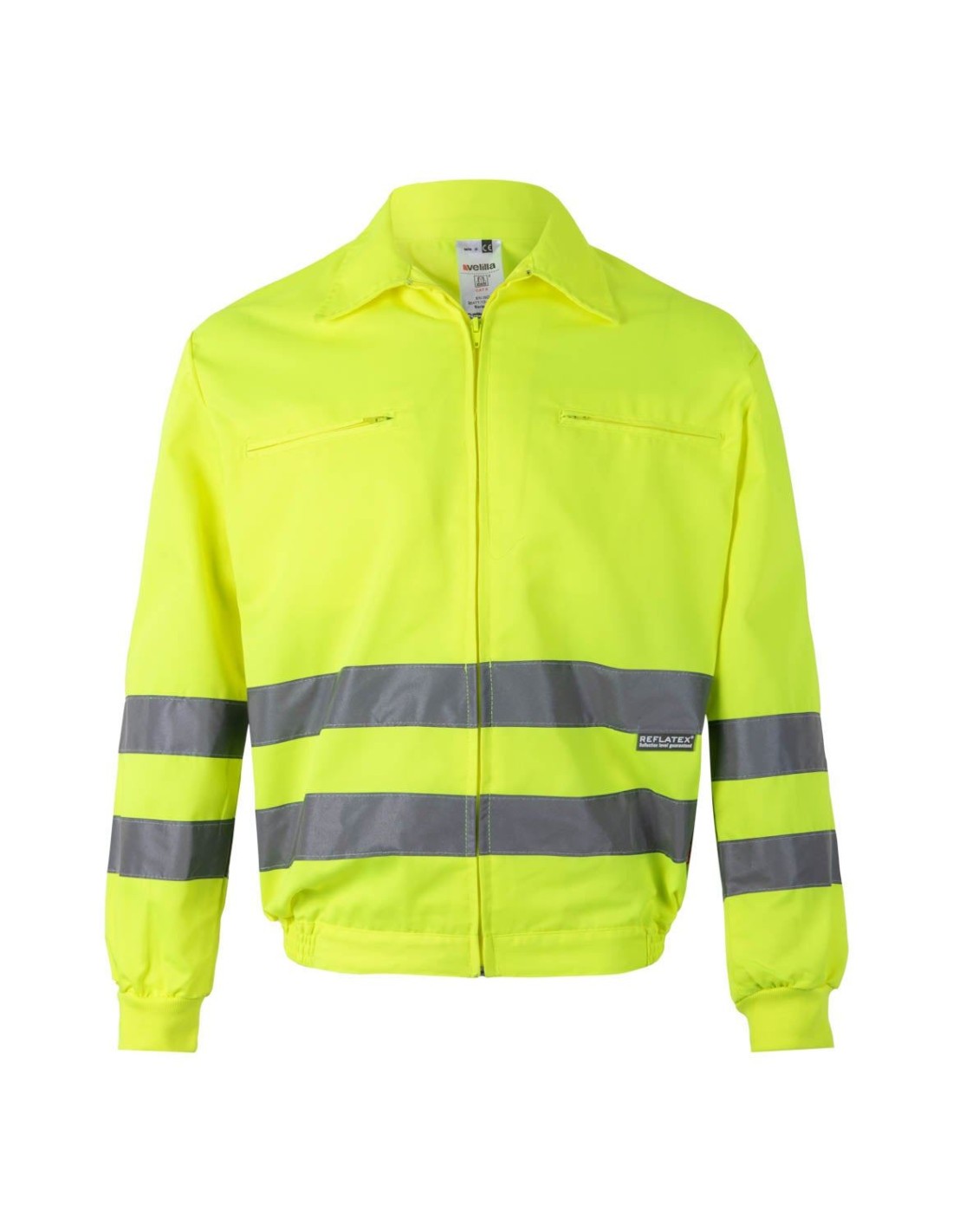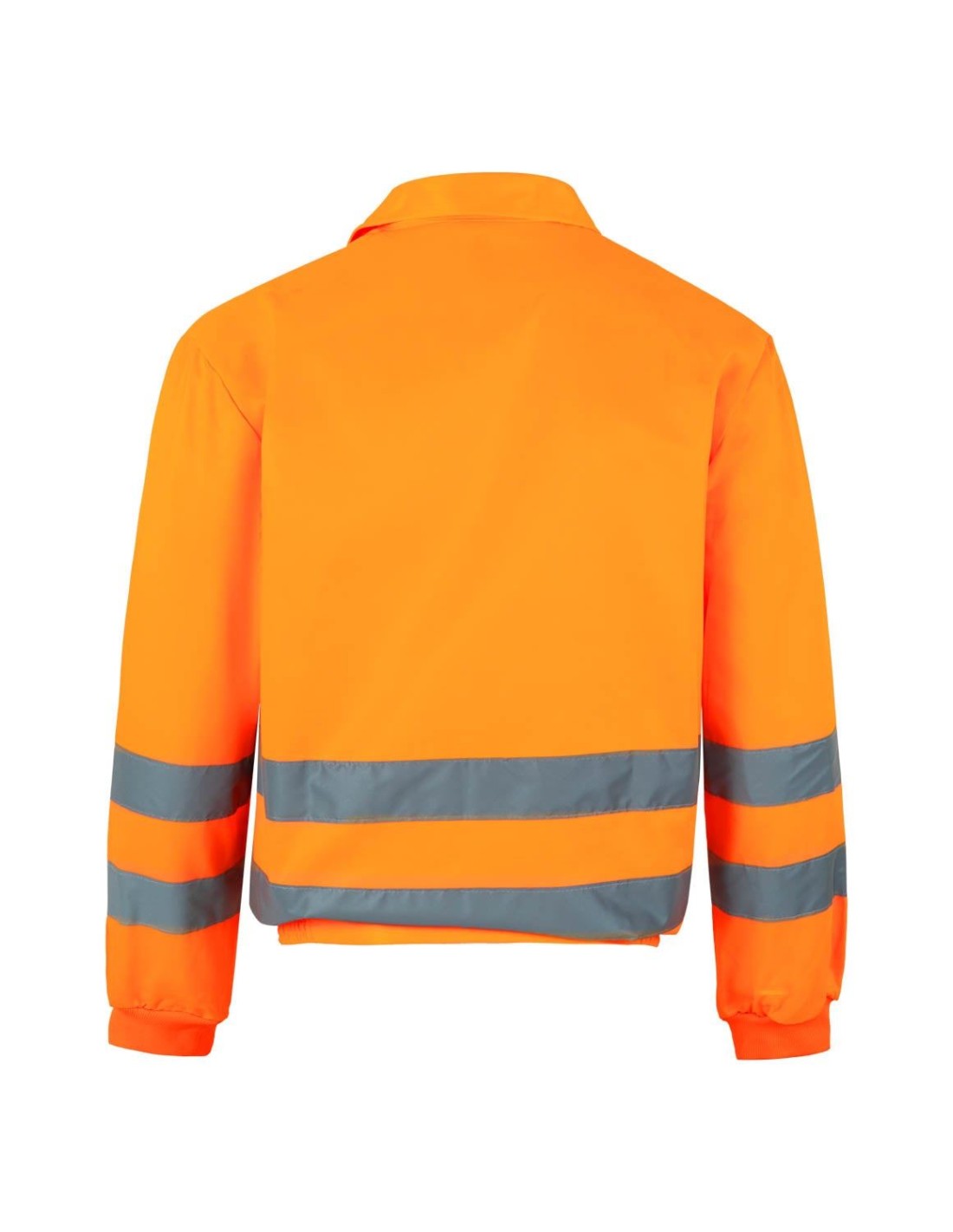 Cierre central con cremallera Cintas reflectantes en torso y mangas Cinturilla lateral elástica Puños de canalé Dos bolsillos: 2 bolsillos en el pec Tejidos: Sarga.