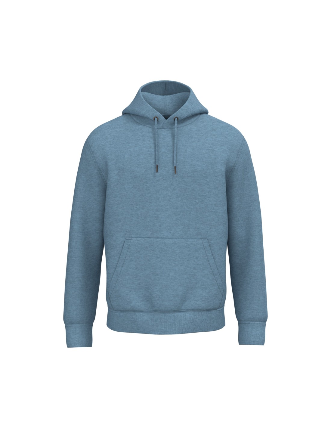 85 % algodón orgánico / 15 % poliéster reciclado post-consumer. Algodón peinado Ringspun. Corte recto. Lavado con enzimas. Felpa perchada de 3 hilos LSF (Low Shrinkage Fleece, felpa preencogida). Media luna en la espalda. Bolsillo tipo canguro. Canalé 1 x 1 en el bajo de la prenda y el bajo de las mangas. Doble pespunte en el bajo de las mangas, sisas, bajo de la prenda y media luna. Tira cubrecosturas en la parte interior del cuello. Capucha forrada en el material principal con tope de cordón. Cordón redondo con puntas y ojales de metal reciclado. El color Raw Natural se distingue por su aspecto bruto, visualmente texturizado, con partículas finas visibles a simple vista.