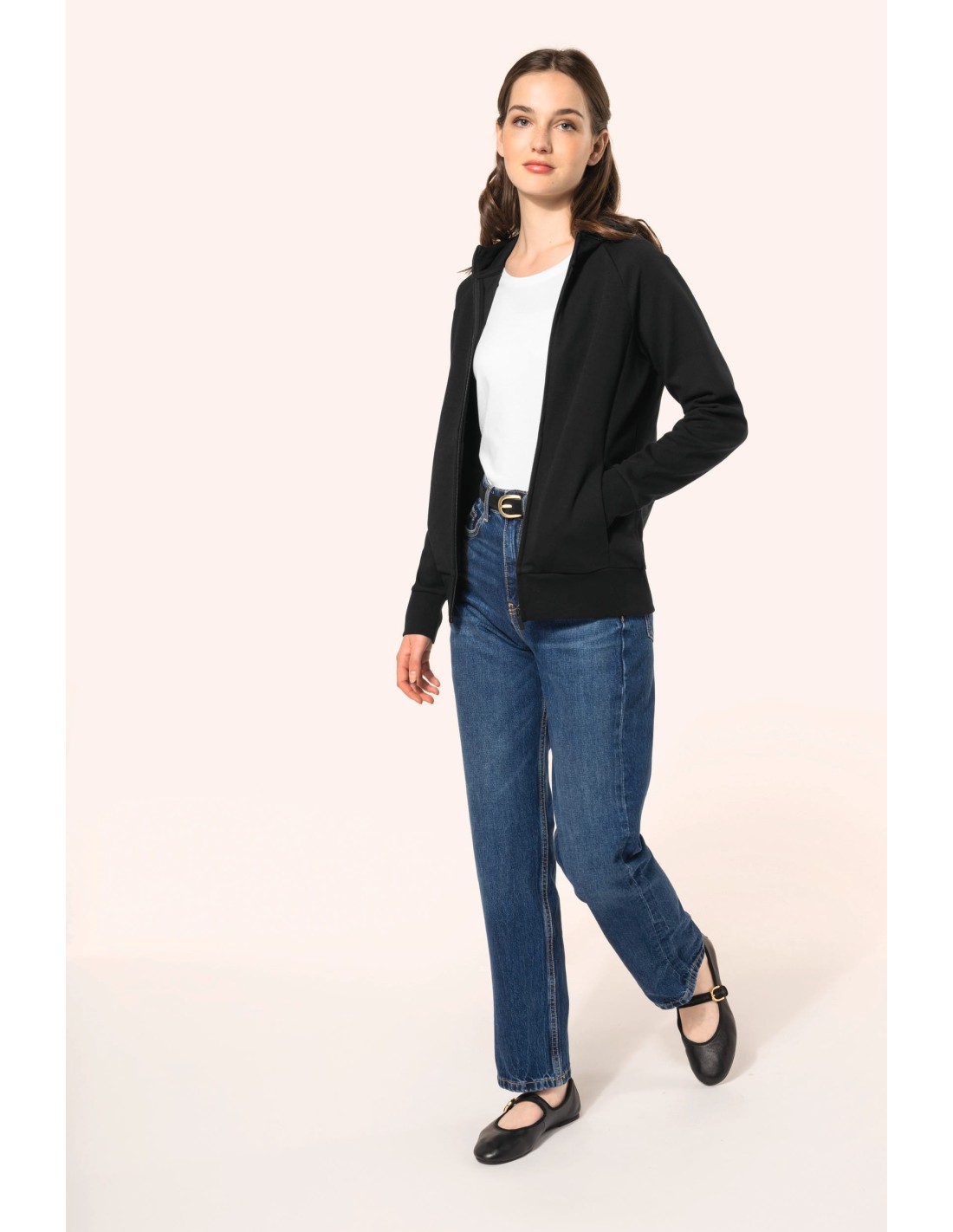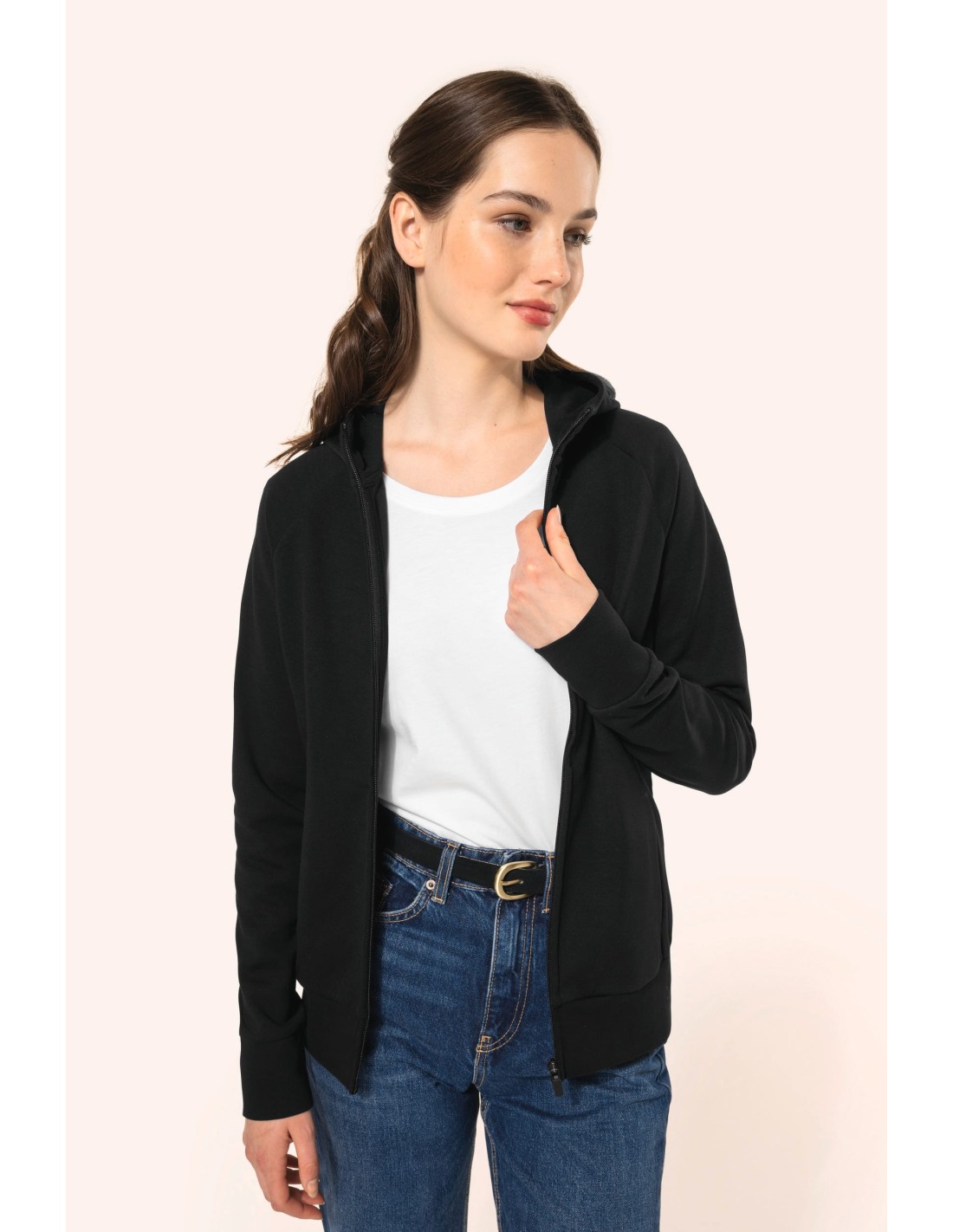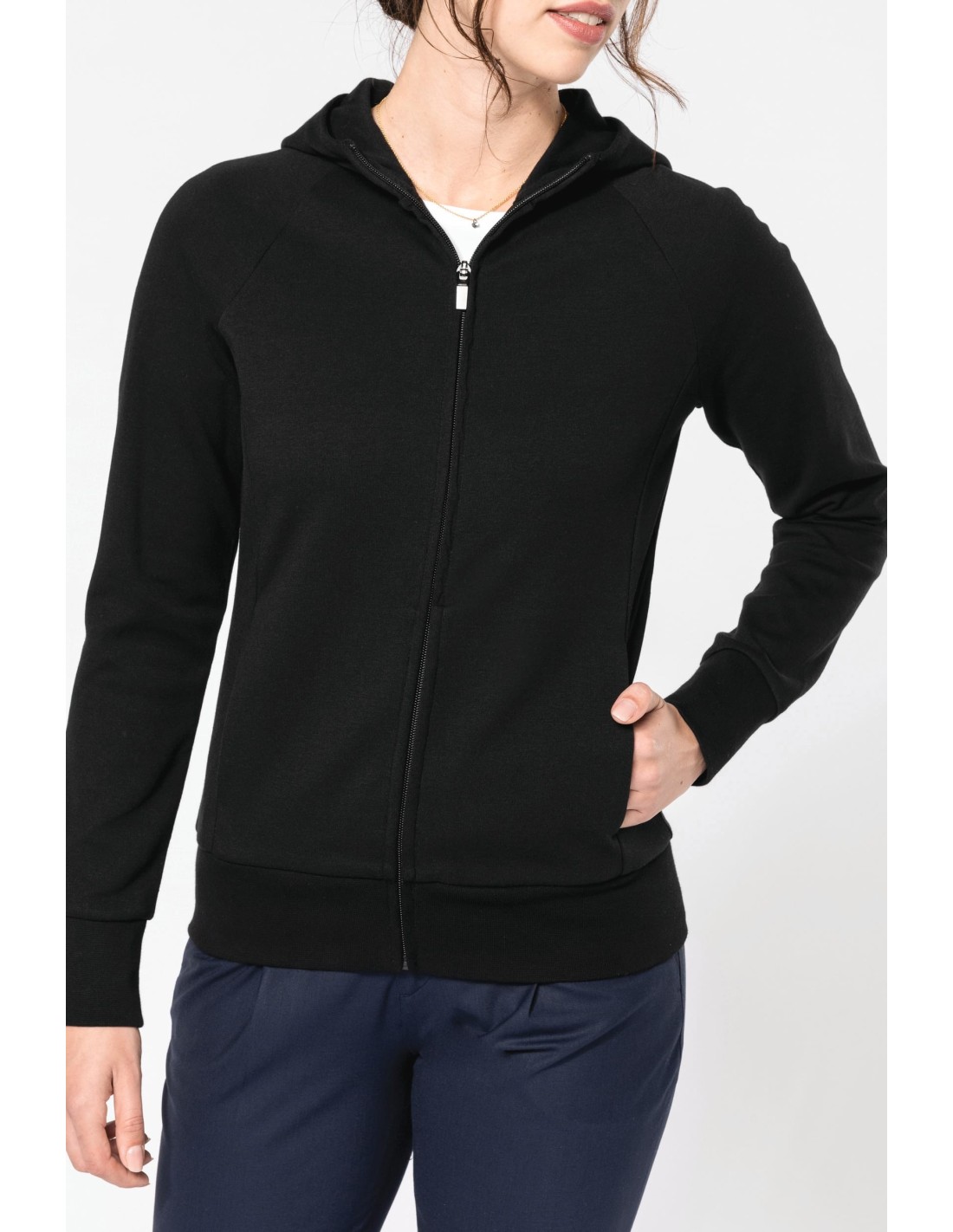 Chaqueta con cremallera y capucha mujer