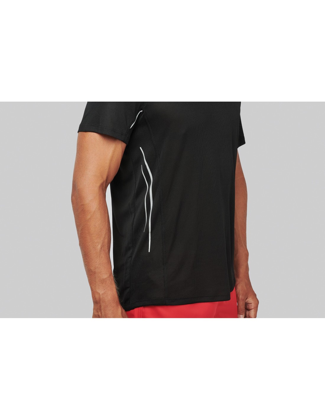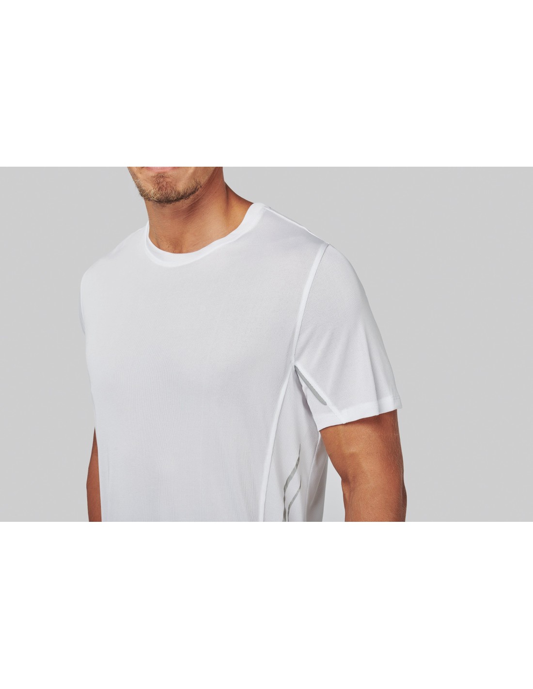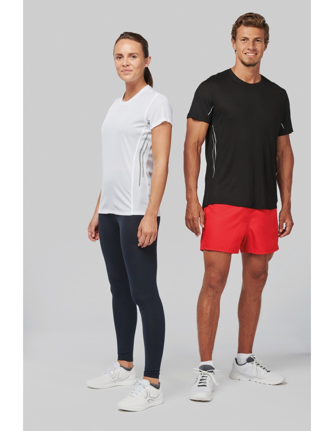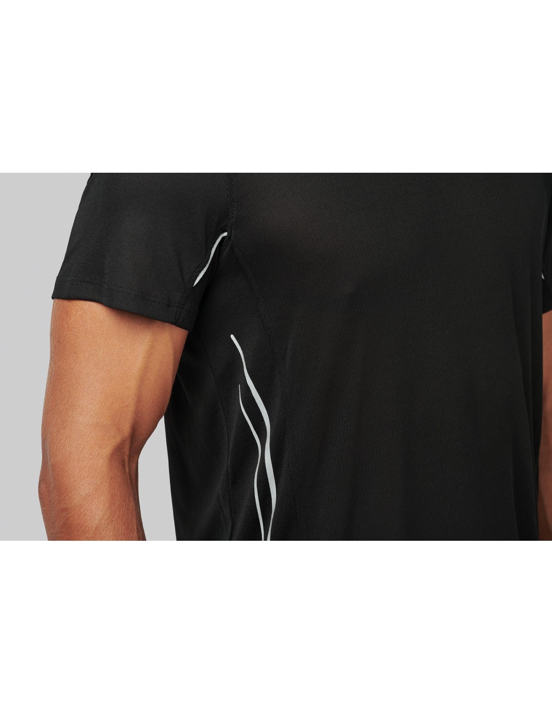 50% poliéster Top Cool ® / 50% poliéster. Tejido lijero transpirable. Tecnología alveolada sobre parte trasera para mejor confort y evacuar la transpiración. Detalles reflectantes sobre motivos delante y detrás. Mangas cortas con ribete contrastado. Tira cubrecosturas contrastada en cuello. Certificado STANDARD 100 by OEKO-TEX®N° CQ1007/7, IFTH.