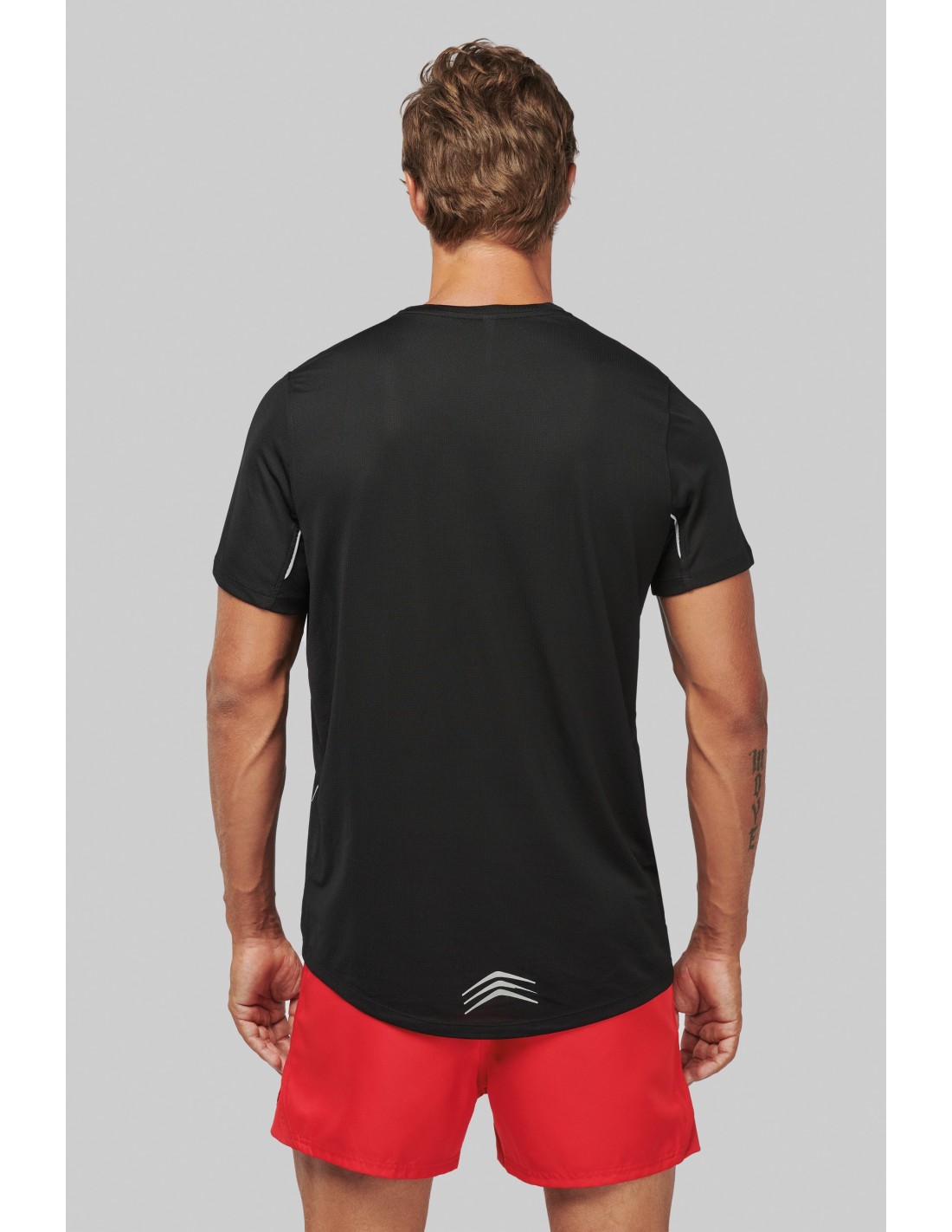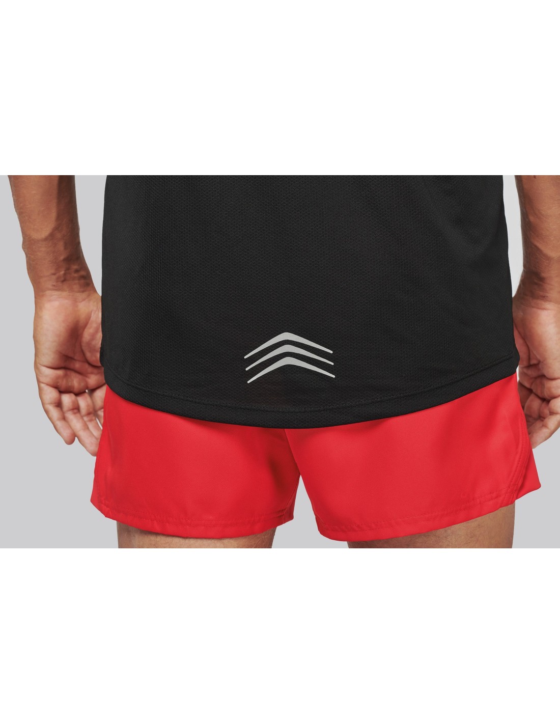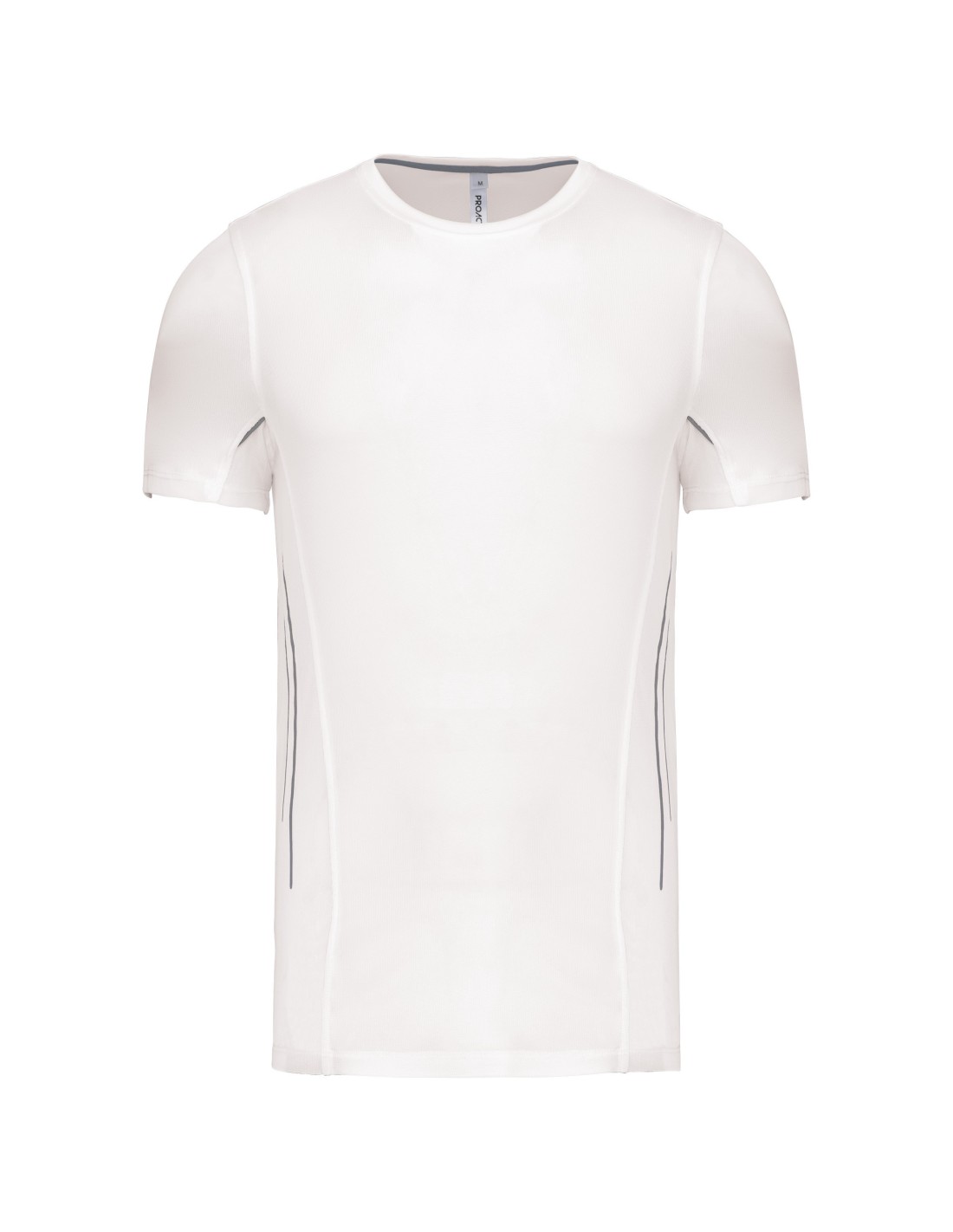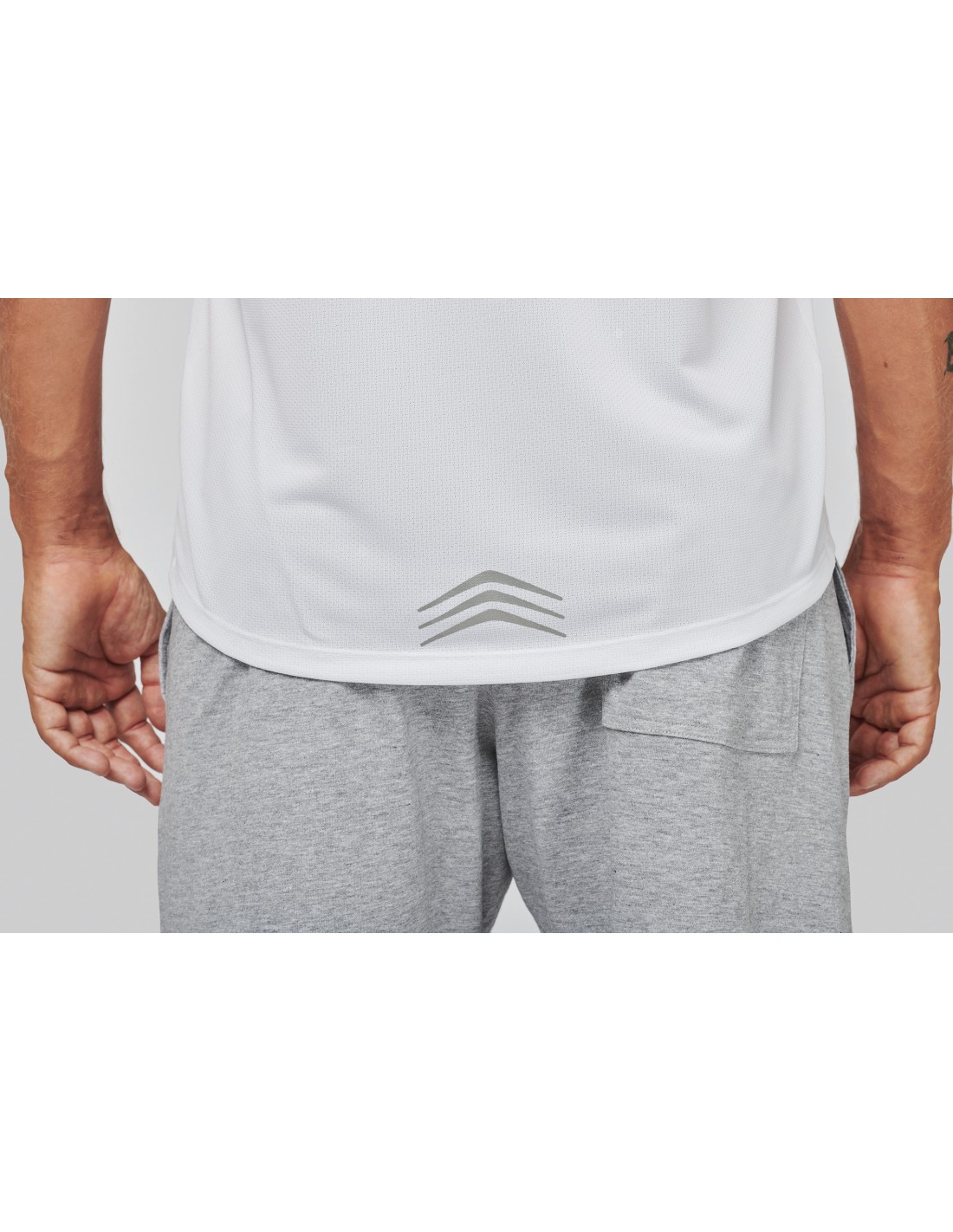 50% poliéster Top Cool ® / 50% poliéster. Tejido lijero transpirable. Tecnología alveolada sobre parte trasera para mejor confort y evacuar la transpiración. Detalles reflectantes sobre motivos delante y detrás. Mangas cortas con ribete contrastado. Tira cubrecosturas contrastada en cuello. Certificado STANDARD 100 by OEKO-TEX®N° CQ1007/7, IFTH.