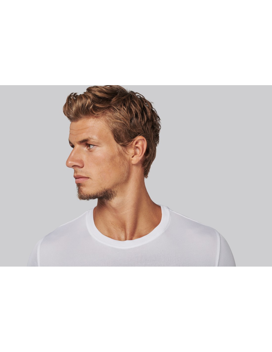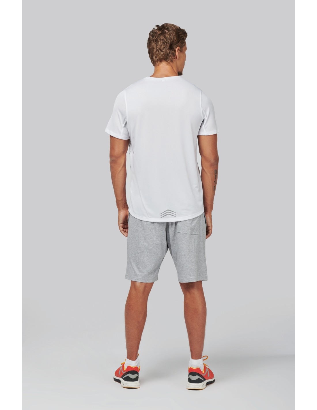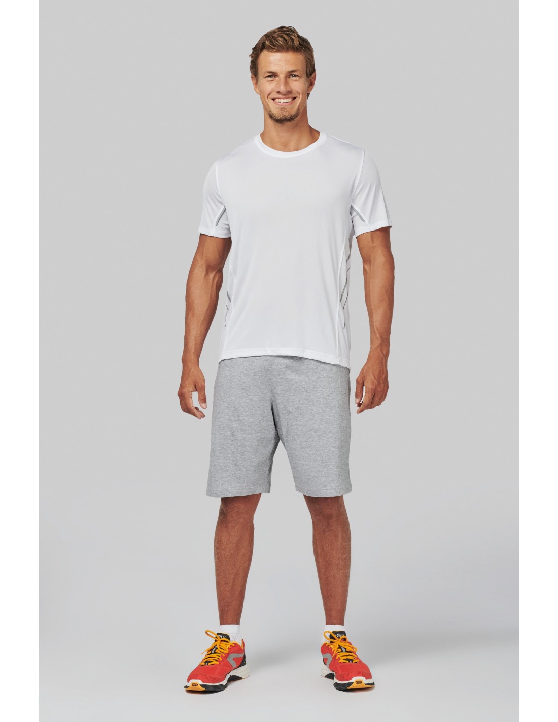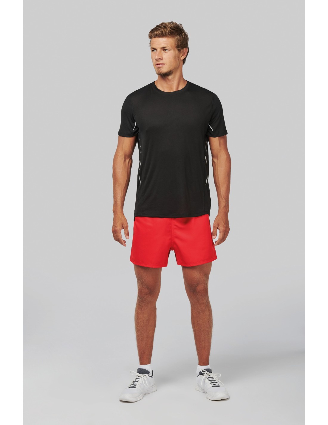 50% poliéster Top Cool ® / 50% poliéster. Tejido lijero transpirable. Tecnología alveolada sobre parte trasera para mejor confort y evacuar la transpiración. Detalles reflectantes sobre motivos delante y detrás. Mangas cortas con ribete contrastado. Tira cubrecosturas contrastada en cuello. Certificado STANDARD 100 by OEKO-TEX®N° CQ1007/7, IFTH.